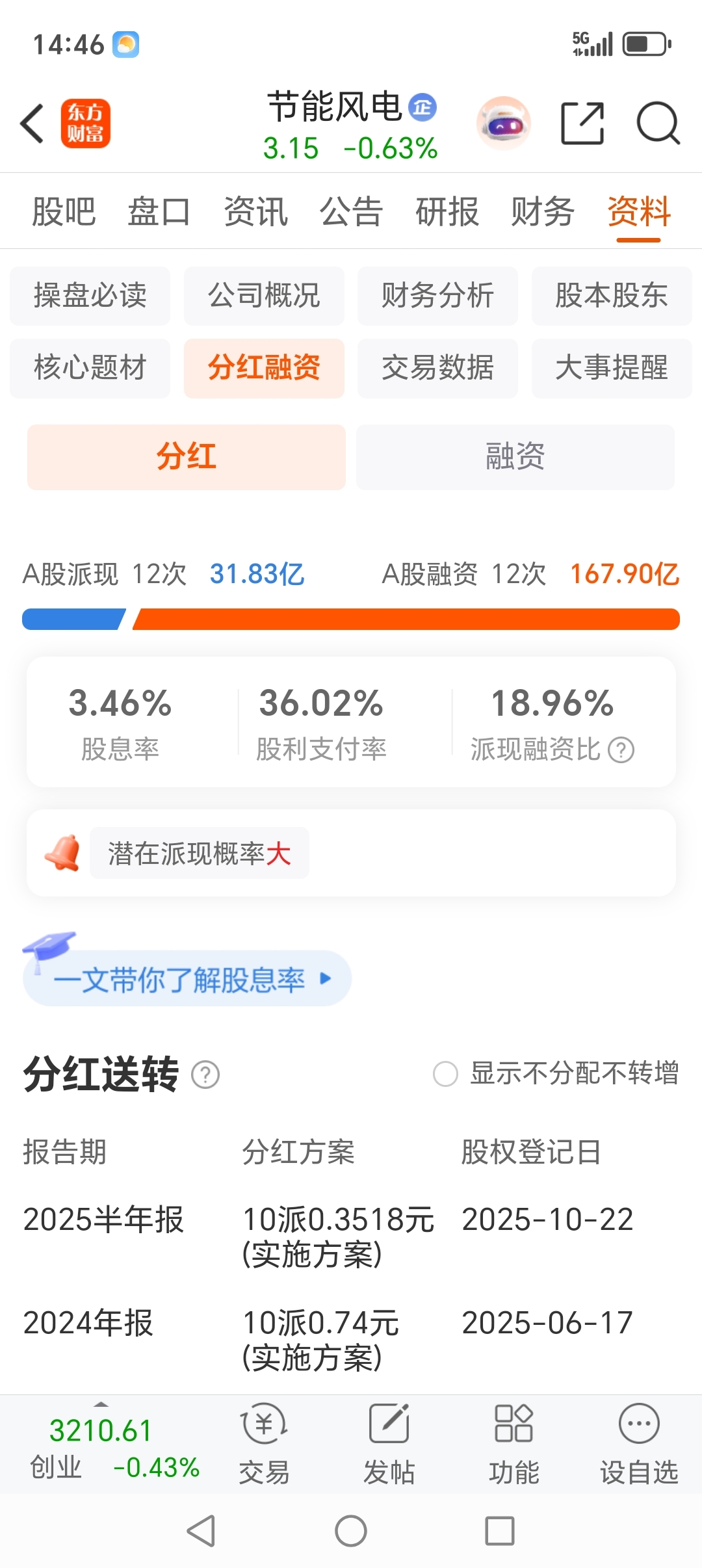$节能风电(SH601016)$ 派现融资本18.96%,一直向资本市场要钱,算上这次,一共十三次了,估计要阴跌两三年了。