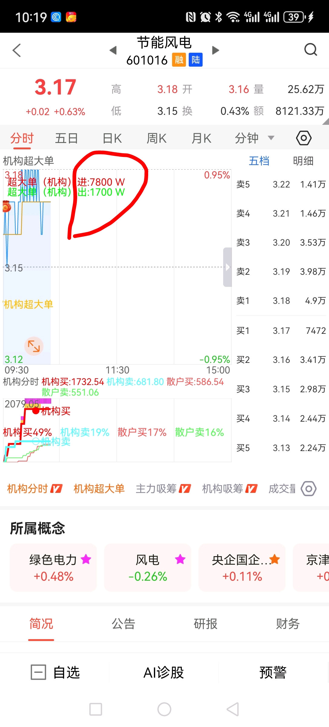 $节能风电(SH601016)$ 机机构近7000万别跑啊。这几天涨停了。