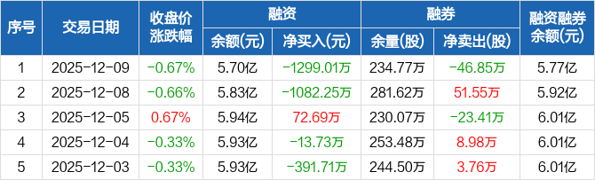 节能风电:融资净偿还1299.01万元,融资余额5.7亿元(12-09)