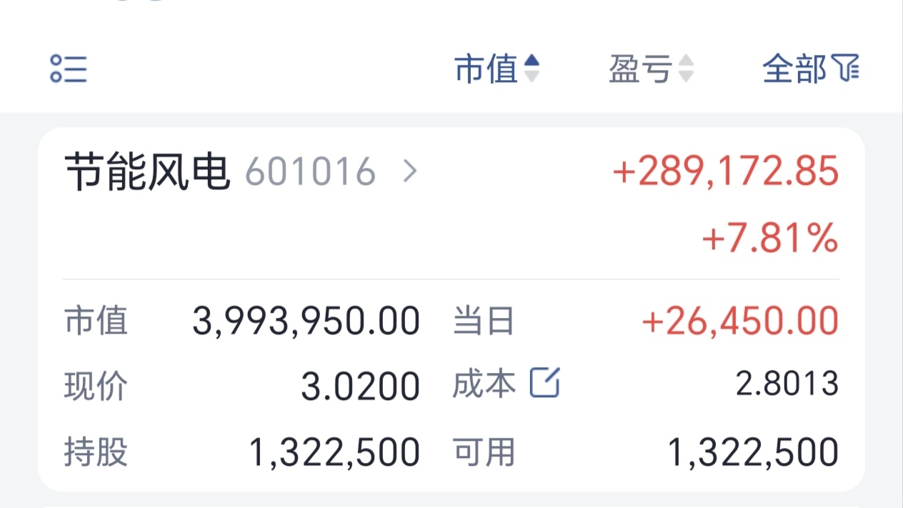 $节能风电(SH601016)$ 炒股就是要熬,2025年4月中旬进场的。
