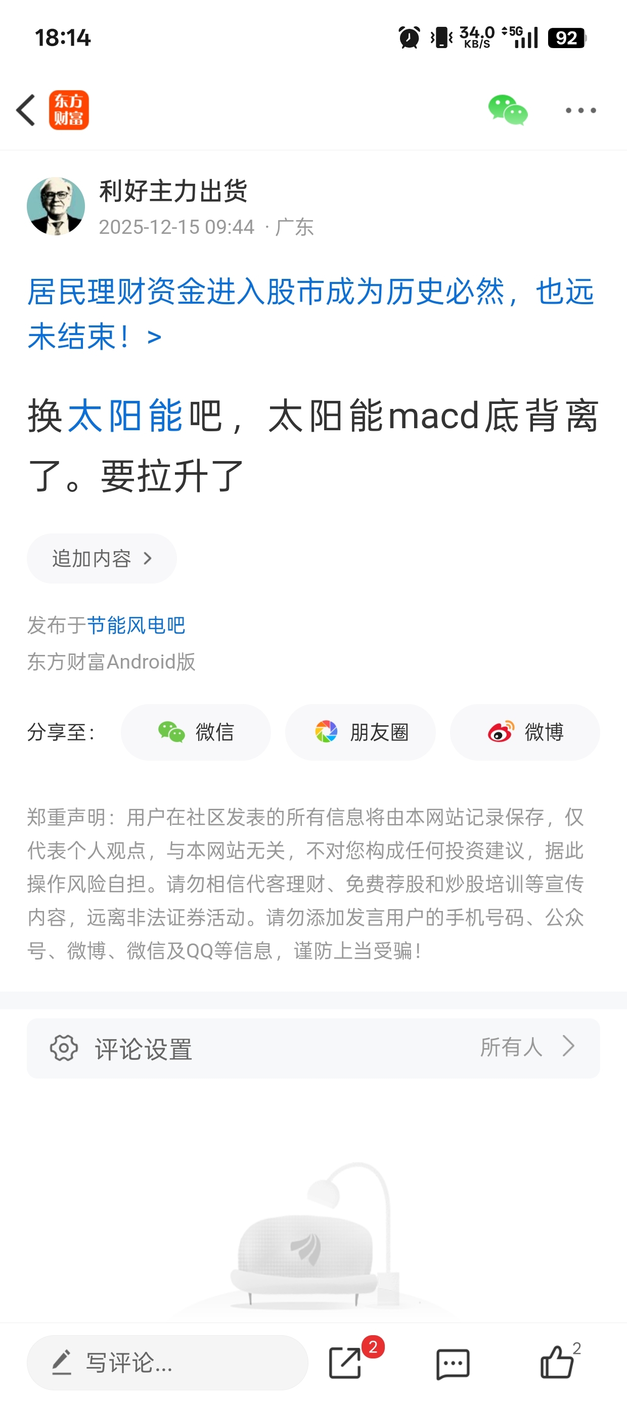 温馨提示: 1.根据《证券法》规定,禁止编造、传播虚假信息或者误导性信息,扰乱证券市场;2.用户在本社区发表的所有资料、言论等仅代表个人观点,与本网站立场无关,不对您构成任何投资建议。用户应基于自己的独立判断,自行决定证券投资并承担相应风险。《东方财富社区管理规定》