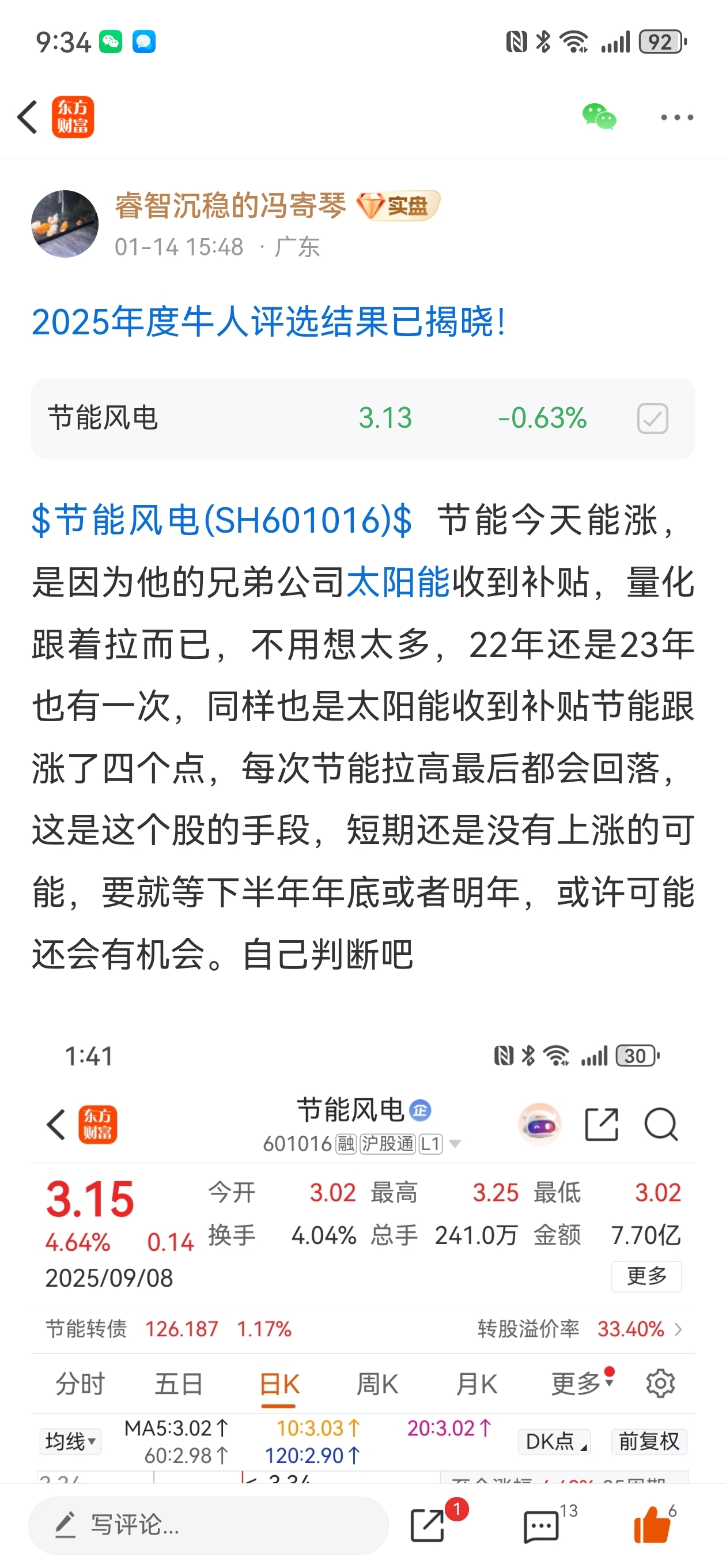 $节能风电(SH601016)$ 提醒够多了,接下来节能就会开始阴跌,2.8-3块是他定增比较接近的价格,那些无脑唱多的要注意