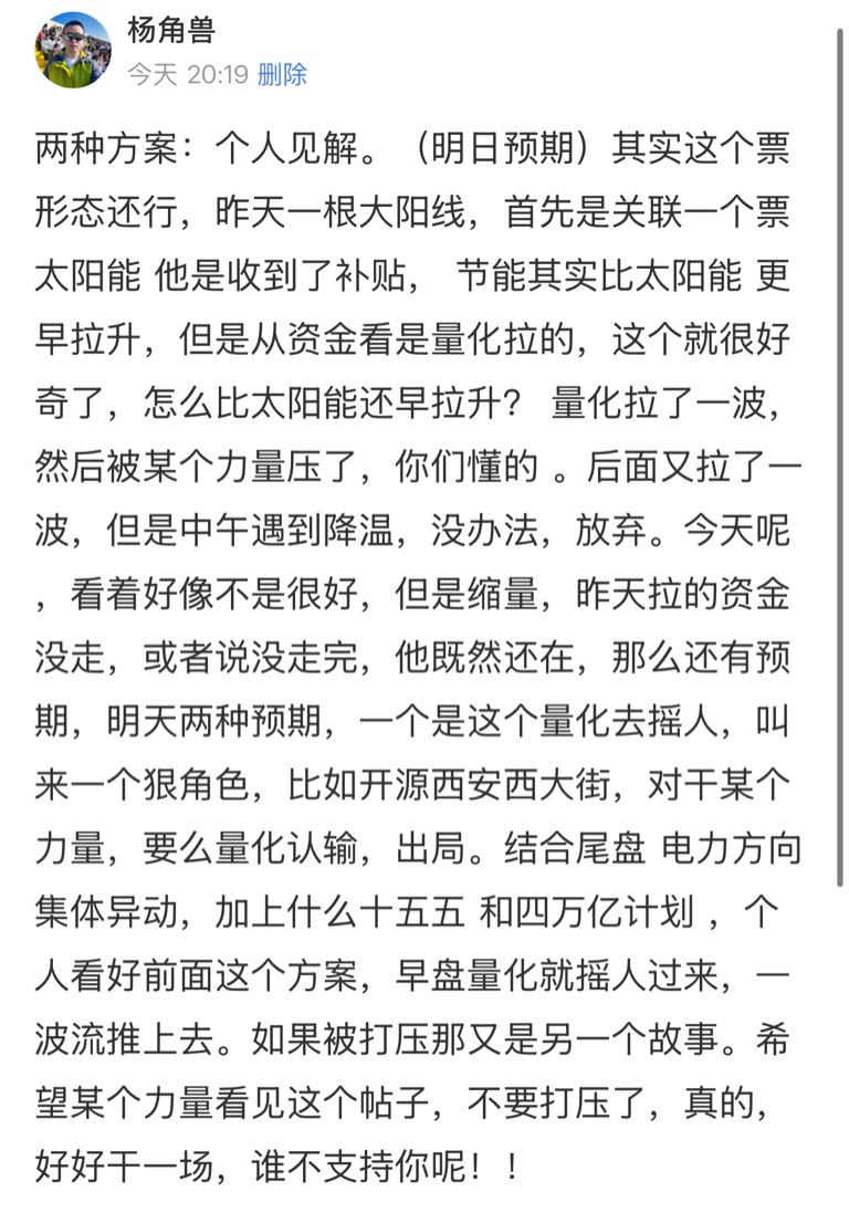 温馨提示: 1.根据《证券法》规定,禁止编造、传播虚假信息或者误导性信息,扰乱证券市场;2.用户在本社区发表的所有资料、言论等仅代表个人观点,与本网站立场无关,不对您构成任何投资建议。用户应基于自己的独立判断,自行决定证券投资并承担相应风险。《东方财富社区管理规定》