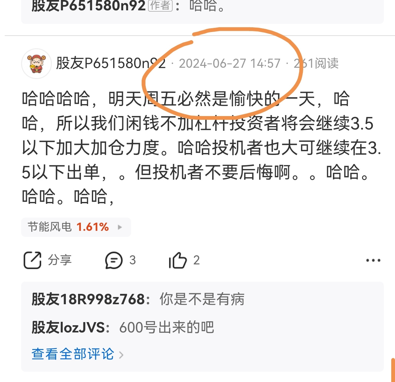 温馨提示: 1.根据《证券法》规定,禁止编造、传播虚假信息或者误导性信息,扰乱证券市场;2.用户在本社区发表的所有资料、言论等仅代表个人观点,与本网站立场无关,不对您构成任何投资建议。用户应基于自己的独立判断,自行决定证券投资并承担相应风险。《东方财富社区管理规定》