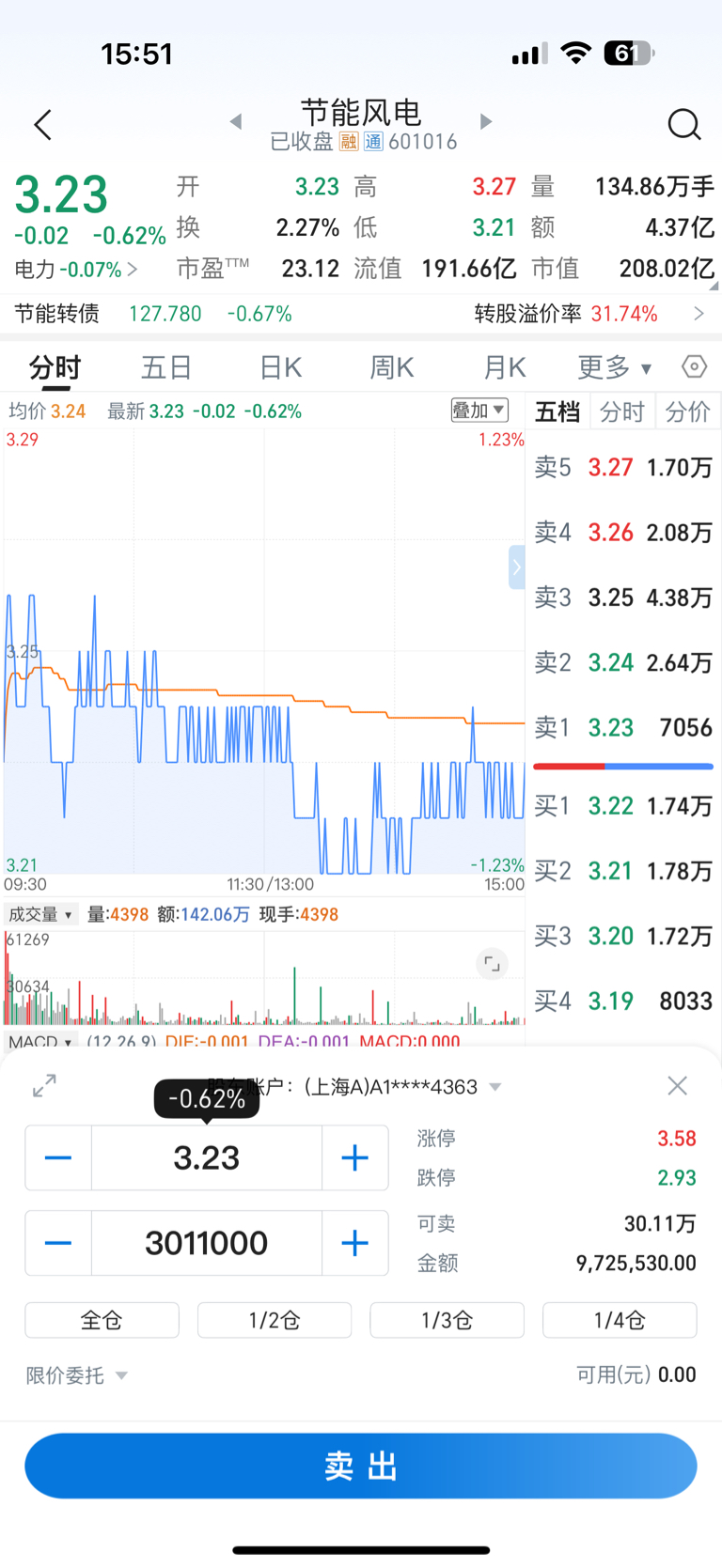 $节能风电(SH601016)$ 节能风电未来必然是价值投资的典范,拭目以待吧!