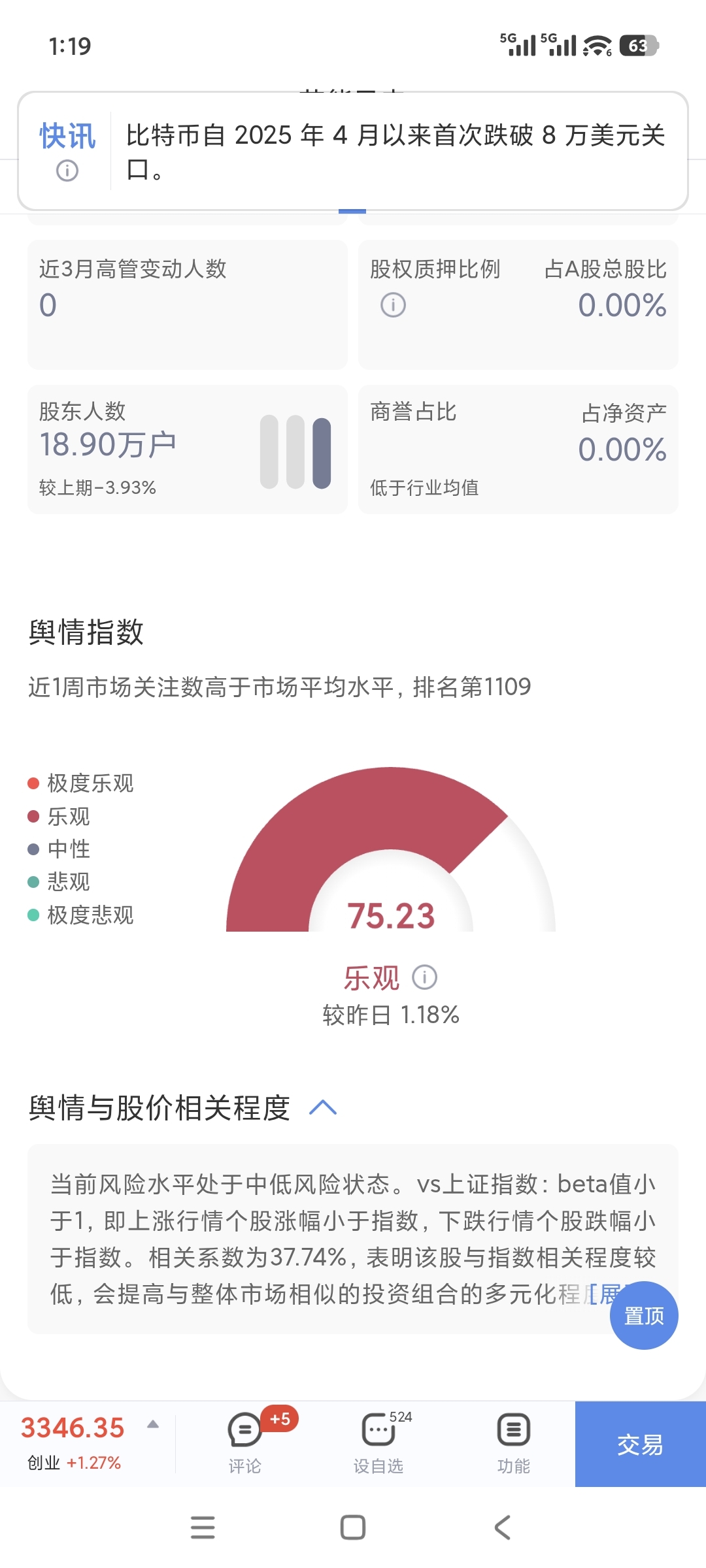 不明白为什么节能风电乐观度这么高,明明是天天跌。看你们这些留言,我明白了,什么跟你死磕到底,什么春节前后上4元,什么因为恐高,没有其他合适的好买,一个个的像打了鸡血一样,,,看来节能风电越跌大家越乐观,,,,看来这张图马上就要上升到极度乐观了,,