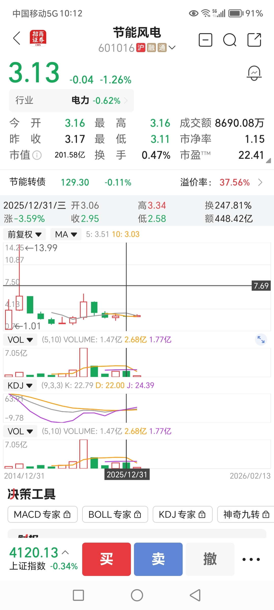 $节能风电(SH601016)$ 国家辛辛苦苦为了金融市场发展,股票涨了1000多点,节能风电在姜利凯领导下,股价大涨了一3.6%。