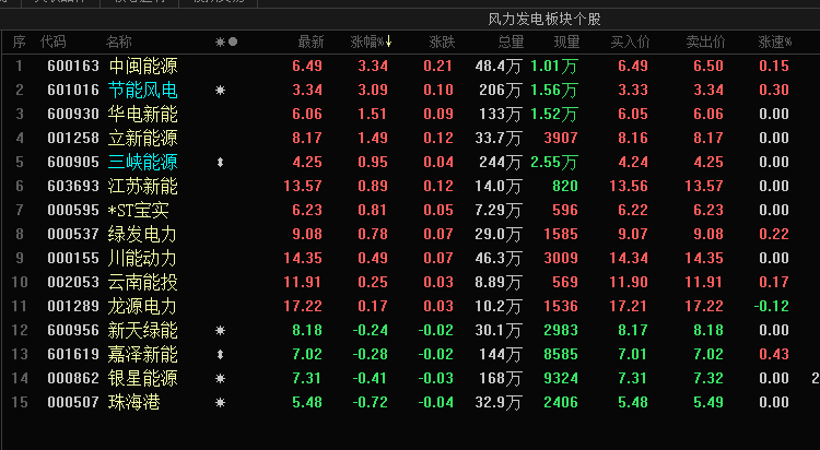 风电板块就这15只股票,节能风电算得上龙头。