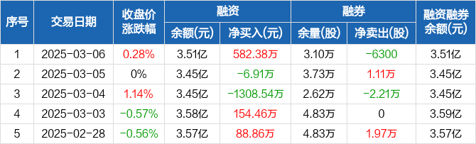 宁波港:融资净买入582.38万元,融资余额3.51亿元(03-06)