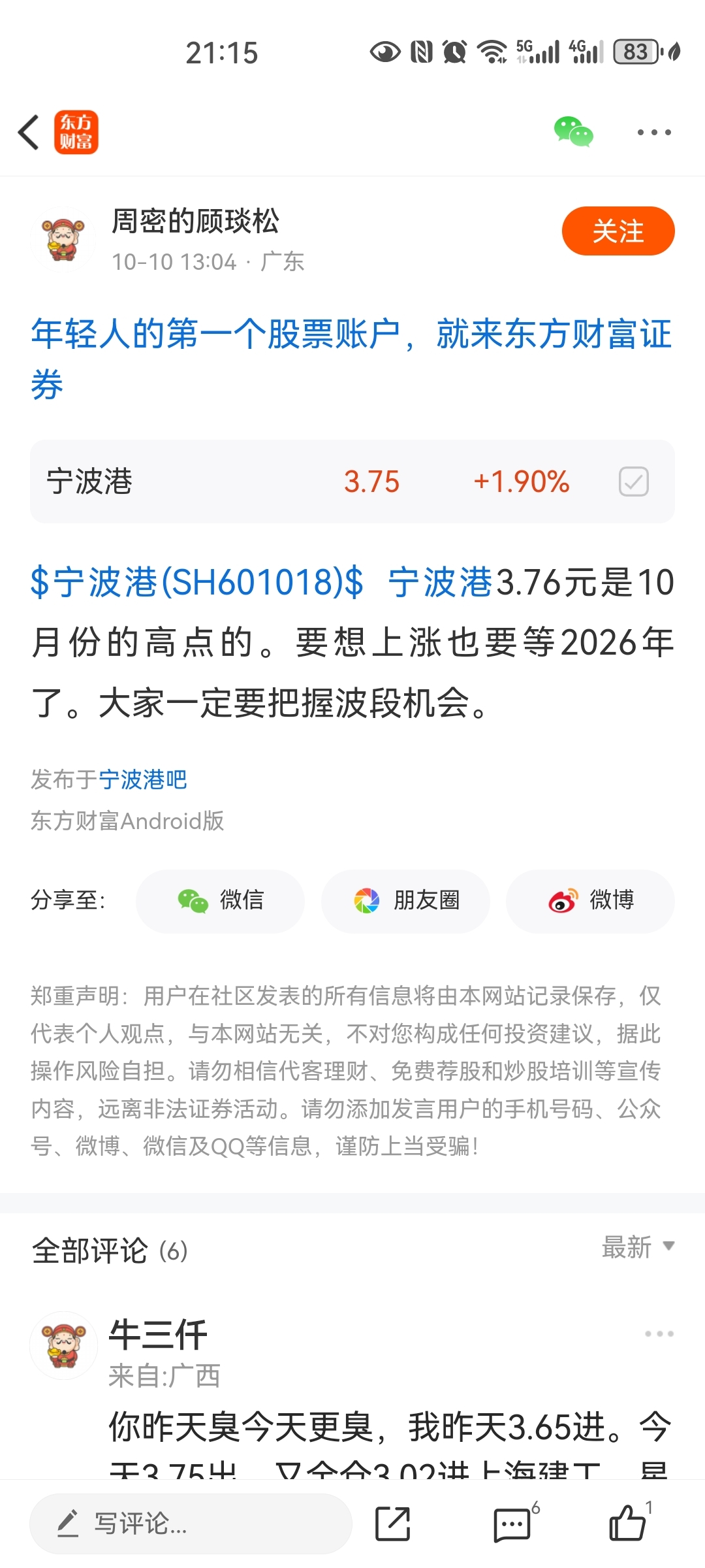 温馨提示: 1.根据《证券法》规定,禁止编造、传播虚假信息或者误导性信息,扰乱证券市场;2.用户在本社区发表的所有资料、言论等仅代表个人观点,与本网站立场无关,不对您构成任何投资建议。用户应基于自己的独立判断,自行决定证券投资并承担相应风险。《东方财富社区管理规定》