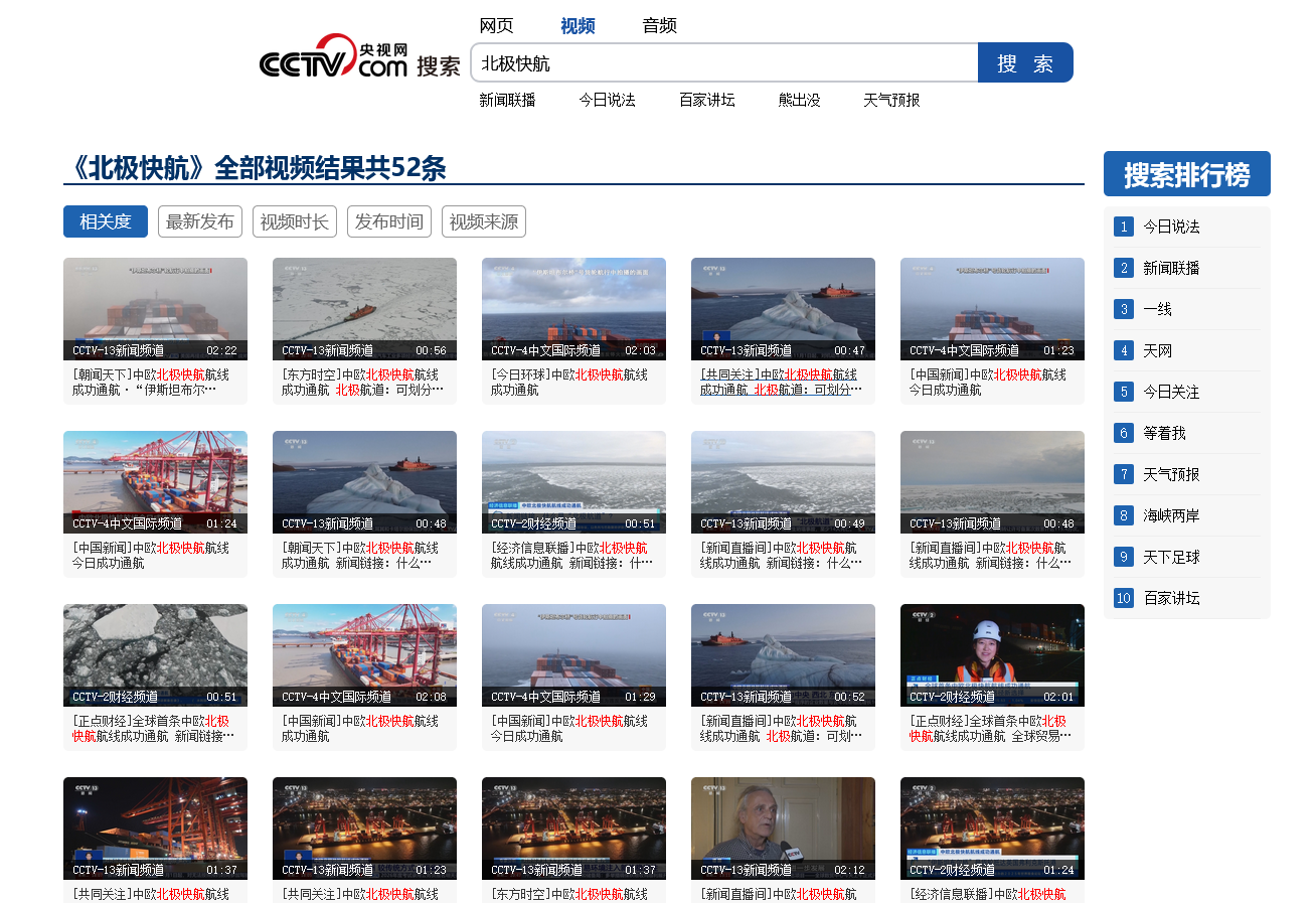 北极快航因战略意义被央视反复报道