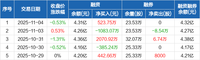 宁波港:融资净买入523.75万元,融资余额4.31亿元(11-04)
