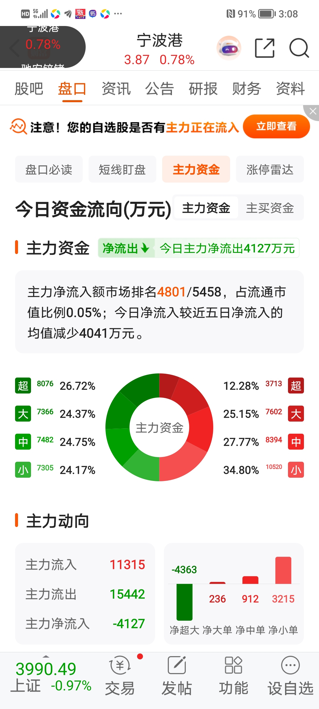 $宁波港(SH601018)$ 啥利空主力资金跑成这样