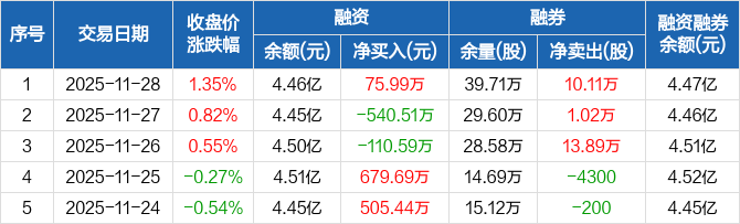 宁波港:融资净买入75.99万元,融资余额4.46亿元(11-28)
