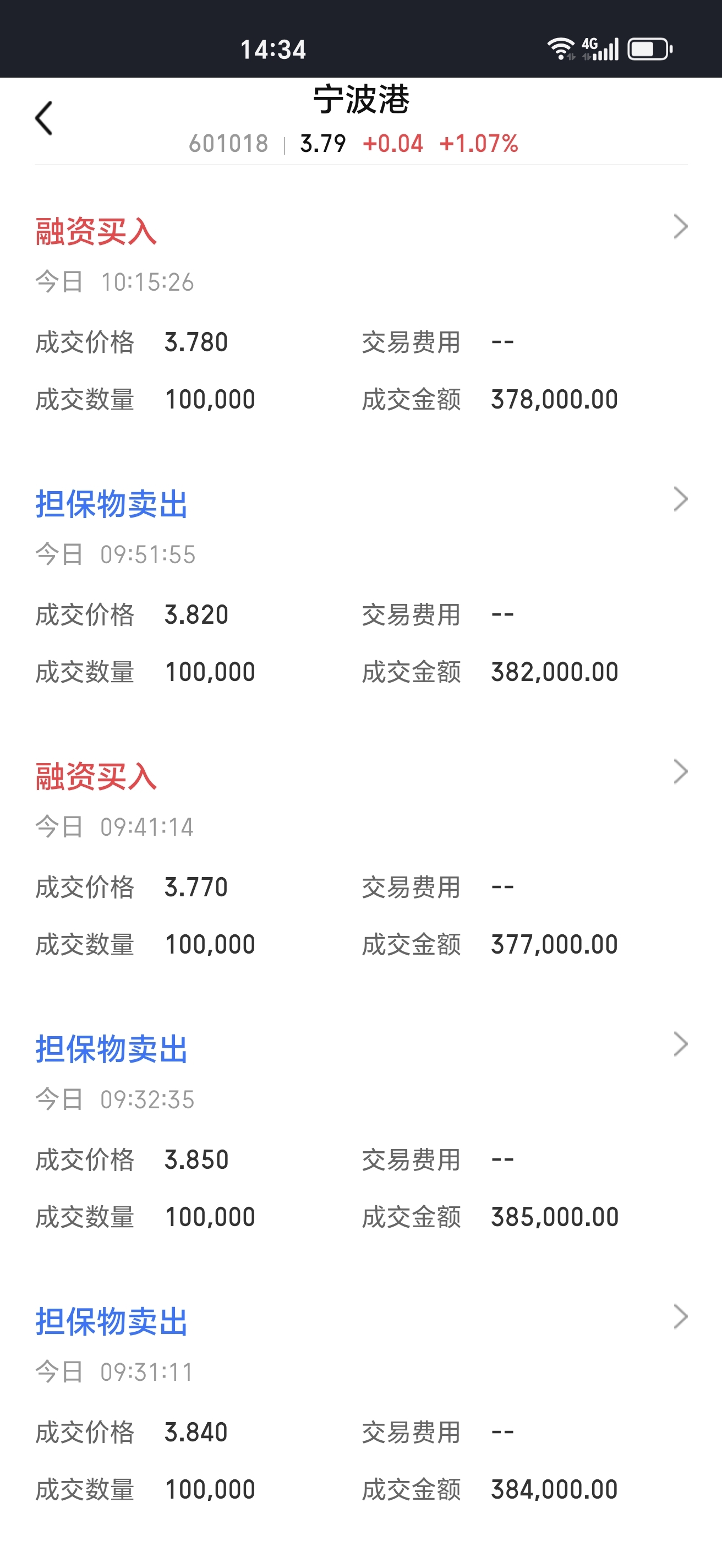 今日早盘高抛2/3,均价3.84左右,尾盘3.76-3.77接回1/3仓位,继续