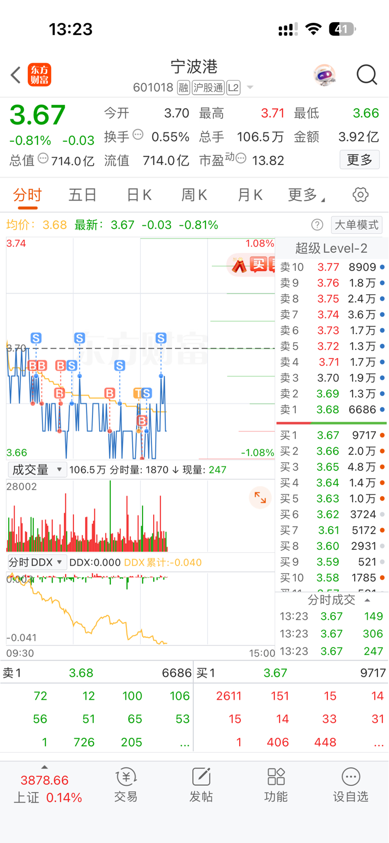 今天T了7次,任务基本完成,3.66买到了,3.69也卖掉了,今天涨跌已经与我无