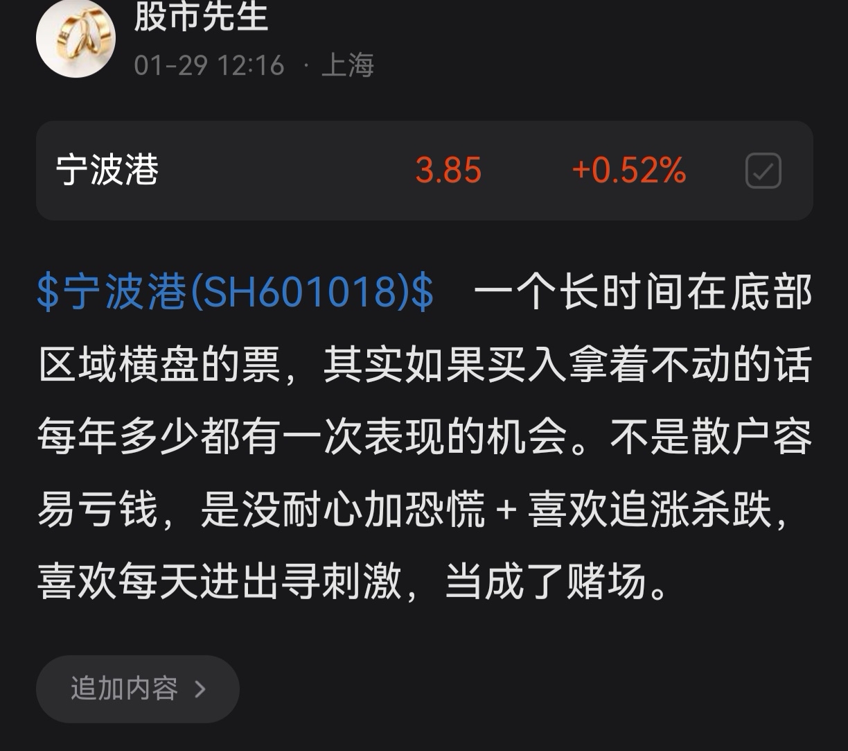 郑重声明:用户在财富号/股吧/博客等社区发表的所有信息(包括但不限于文字、视频、音频、数据及图表)仅代表个人观点,与本网站立场无关,不对您构成任何投资建议,据此操作风险自担。请勿相信代客理财、免费荐股和炒股培训等宣传内容,远离非法证券活动。请勿添加发言用户的手机号码、公众号、微博、微信及QQ等信息,谨防上当受骗!