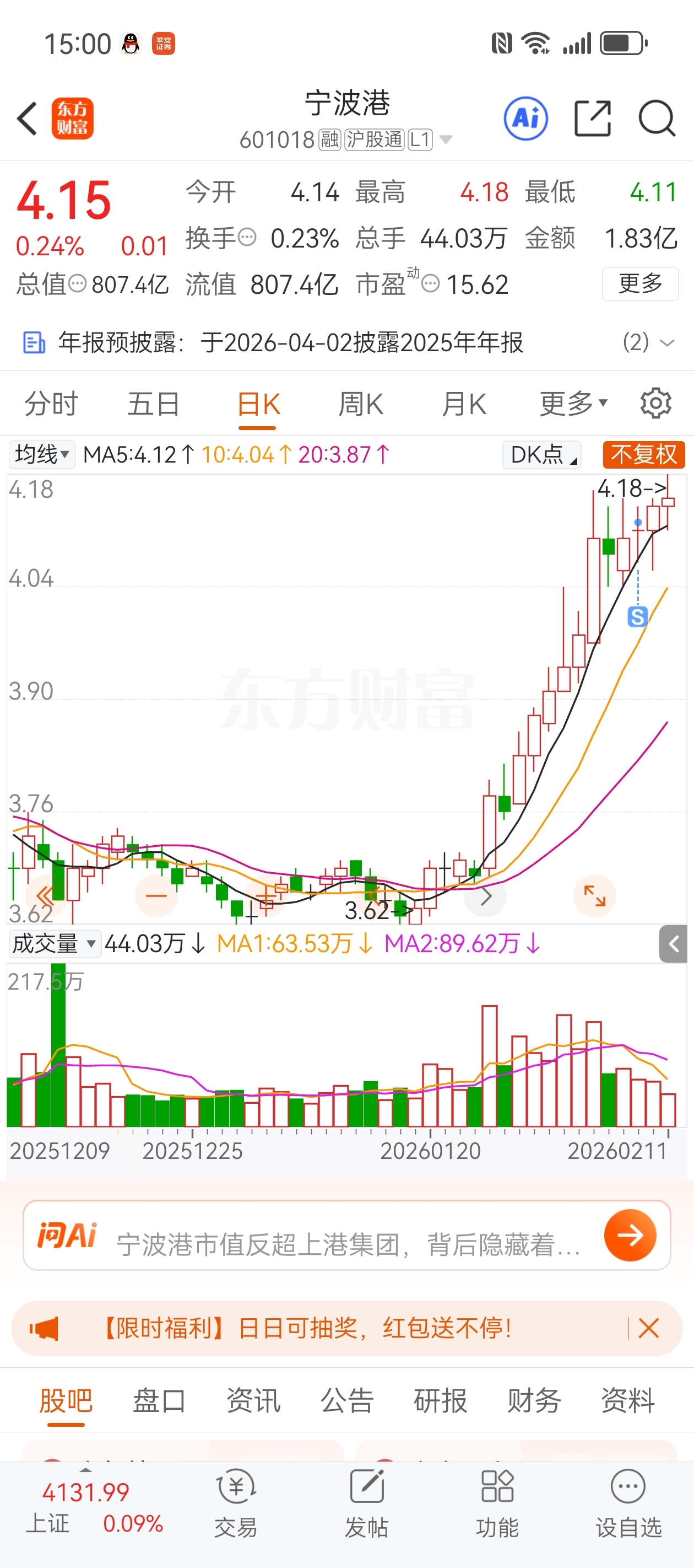 $宁波港(SH601018)$ 坐等跌下来