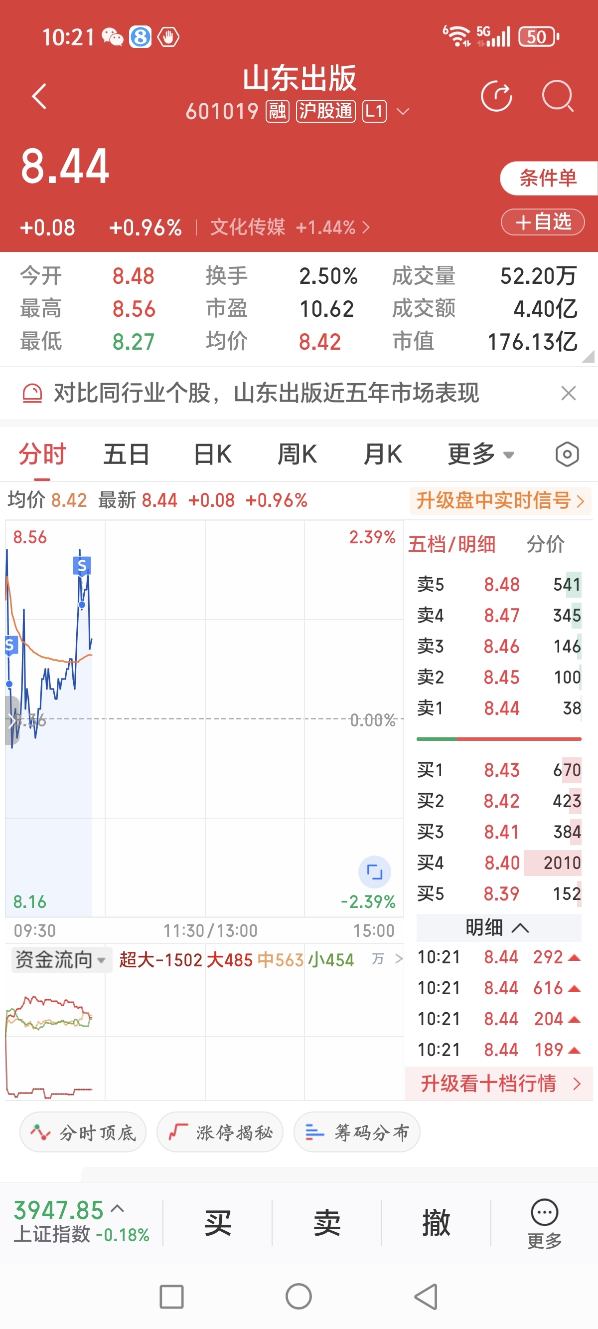 $山东出版(SH601019)$ 兄弟们,我先退出了,回头再来看大家。后期涨不涨无所谓了,条件单已经成交了,我的任务已经完成了。再见!