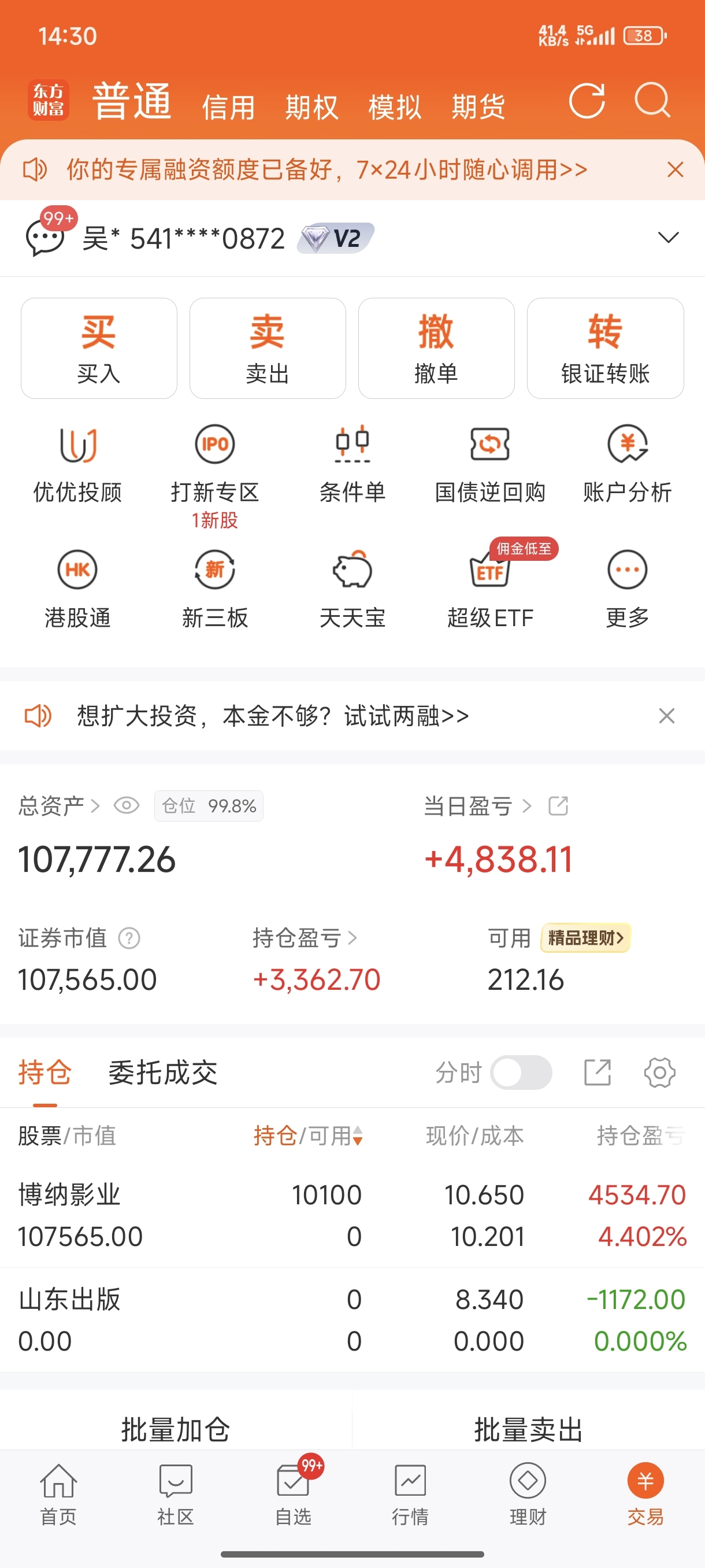 $山东出版(SH601019)$ 还好卖了你买回我的博纳,阿凡达概念股,昨天把博纳卖了买你,害我一来一回少吃16个点