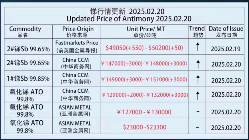 $华钰矿业(SH601020)$ 国际国内锑价继续上涨$湖南黄金(SZ002155)$ $华锡有色(SH600301)$