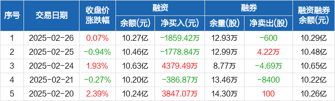 华钰矿业:融资净偿还1859.42万元,融资余额10.27亿元(02-26)