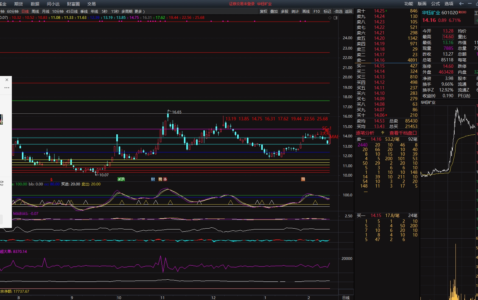 $华钰矿业(SH601020)$ 在 13.85 上方不买只看热闹, 在 13.19 有一定支撑,不有效跌破就买,跌破就不买,这是纪律坚决执行。宁可错过也不犯错!!!它在主图最上方显示上方的阻力位依次有 14.79 16.31 17.62 19.44 22.56 25.68 等,哪里冲不过就在哪里出!只希望他在回踩 不跌破时买进,跌破千万不要买!这是纪律!坚持不追涨原则。天天有股选何必去追涨呢。如果跌破 则可能向下到 等等下面的就不说了,不严格扏行止损纪律就同样可以向下计算出万丈深渊! 25年元月1号起选股业绩是1号选的海德控制7↗连板,6号选的海鸥股份4连板,9号选的金奥博7连板,9号选的苏豪弘业6连板,14号选的壹网壹创两天三十多个点,20号选的祥源新材阴线次日早上也阴线买入,两天最高冲了20多个点,22号选的川环科技当天只涨6.7%次日最高涨17%,27号再次选的杭钢股份开年七连板,2月5号选的浙数文化六连板了,7号选的美年健康10号↗12号14号17号涨停,12号选的万达电影13号早盘有绿盘时可买中午涨停,6号选的新时达7号可买随后停牌复牌后2个一字板28个交易日47个10%。理论上7个10%就翻倍!有些连板股次日不给机会上车但说明我的选股方案非常好!我这个股市神枪手值得关注! 优化升级后的人工智能选股大数据模型选出来的有些是小阴小阳的这种涨的慢但安全要有耐心,有些是已经涨停板了的当天买不到,只能等次日回调不跌破我计算的某个关键点位时买入,跌破了的千万不要买!这是纪律。板后的追高风险太大,宁可错过,也不能犯错误!先慢慢接受慢慢适应。要知道首个涨停板就是庄家的宣示!只要满足一些技术条件或事件条件就不要太怕什么!注意买了后不寄望都会有涨停板,买后有赚就可以,赚了就跑,快进快出,模拟手动量化交易。 这个选股器隔三差五总能选出连板飚升股,效果很好!虽然还是不能百分百准确,但网上能够经得起公开验证的不多见,比一般的强。可以查查我24年8月19号收盘后选的常山北明的帖子,从6.23最高涨到11月1号39.88翻了5.4倍!其他连板飚升股太多了懒得统计!网上那些大w只讲板块和指数,那是放空炮!没有实际意义,买什么买哪个我直接点对点精准出击。不要浪费时间看大w的。 总是有些没有修养的喷子喷人,我会拉黑永久屏蔽他,不能让喷子知道这个重要点位,这些点位对已经持有的人有很大提示参考价值。 我画的这些彩色横线是我自己研究了多年才得出的,每根横线处股价有效冲过了就是支撑,冲不过就是阻力,是我的独自研究的,很准的。请仔细看照片,也请你自己同时在你自己电脑行情软件上我说的那几个价位上画横线,可以看见已经走过来的历史很清楚地展示出来了支撑和压力,未来也同样,所以要重视这些彩色横线所指价位或者主图最上方标注的价位!不要听那些大W大砖家的!不要听他们耍嘴皮子!更不要看他们耍笔杆子! 超级短线票不要指望一步就涨好几个价位,有壹两个价位就够了,通常赚1个价位即1个台阶就走,当然能碰到连板股更好,但不强求,坚定只做超级短线理念!赚了钱就跑,象抢劫犯一样,赚了不跑就会由赚变亏,就会被套被关号子坐穿牢底! 选出1个股票还没有买就先告诉你哪几个价位是阻力,在哪根彩色横线冲不过就要抛出,这是全市场人 士没有的!任何股评师无法企及不是这个档次,不要看均线金叉才买入出金叉后就已经涨上来好几个点了,也不要等死叉才卖出,死叉后就已经跌了好几个点少赚几个点了,只要看我计算的点位,哪里冲不过就在哪里抛,就抛在了高位! 智能选股大数据模型就是程序化选股,程序是固定的,同时程序不识别文字只识别交易数据,同一个股不同波段的高低点价格不一样,不同个股更不一样,选出来的股就只有名称不同,但用的程序是相同的,所以你们看到我的文章只有股票名称和价格不一样。 所选个股还做不到百分百成功,还需要各位再全方位精选,我的只是参考 。 长文里有些话是我以前失败教训的总结,要重视!并且提示关键点位后难点在执行力,比如某个点位明显冲不过或撑不起来一定要抛的时候,却犹豫不决错失良机。所以要磨练执行力! 欢迎关注不关注就不能及时了解我的新选个股动态。粉丝多少对我无所谓,如果不关注,对你可能少了一个提示你抓发财机会的朋友。对你可能少了一个提请你抓飚涨个股的朋友,我这个股市义工朋友值得信赖!!! 如果赞成我对某个股的观点请在(评论)栏发个笑脸或花朵,不要(点赞)!!!因为(点赞)不能更新帖子在股吧的排序和顶帖,犹其是已经持有的人多顶帖是在为你自己拉人气。 我的股友不是几百几千个,而是几万个,他们都是经历过返复对我考察后才接受我的,几万个聪明绝顶铁粉的信任,我必须诚心相待才对得起朋友!尽量尽力做好股市义工!是你们的信任让我的努力变得更有意义!让我们一起在股市共创辉煌共同发财!!!