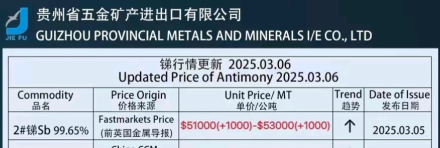 2024年8月15日,商务部、海关总署公告对锑等物项实行出口管制,管制内容包含锑矿及原料、金属锑及制品、纯度大于等于99.99%的锑的氧化物、金锑冶炼分离技术等物项。2024年12月3日,商务部再度公告,原则上不予许可镓、锗、锑、超硬材料相关两用物项对美国出口。