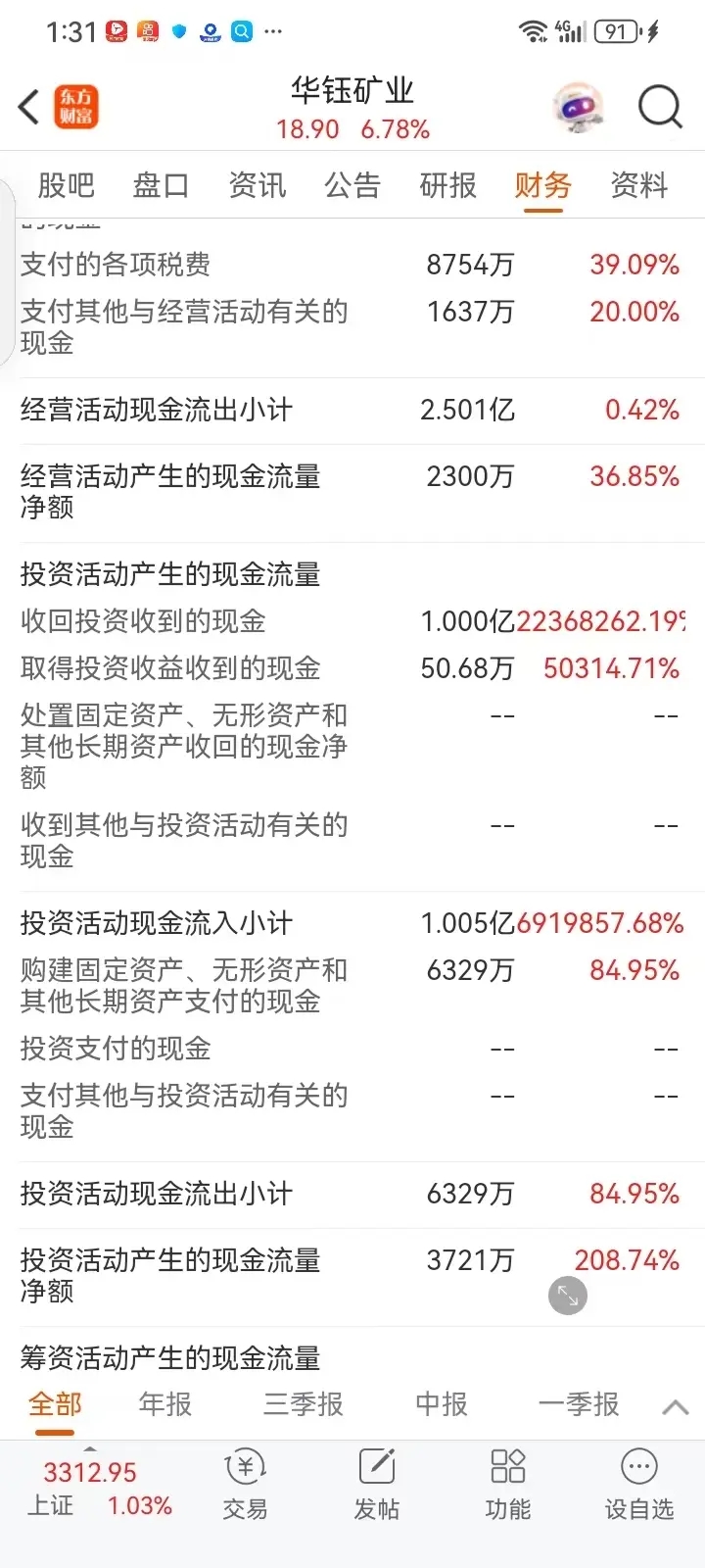 华钰一季报现金流回报率两市第一华钰一季报回报率破历史新高华钰一季报现金流惊人的回