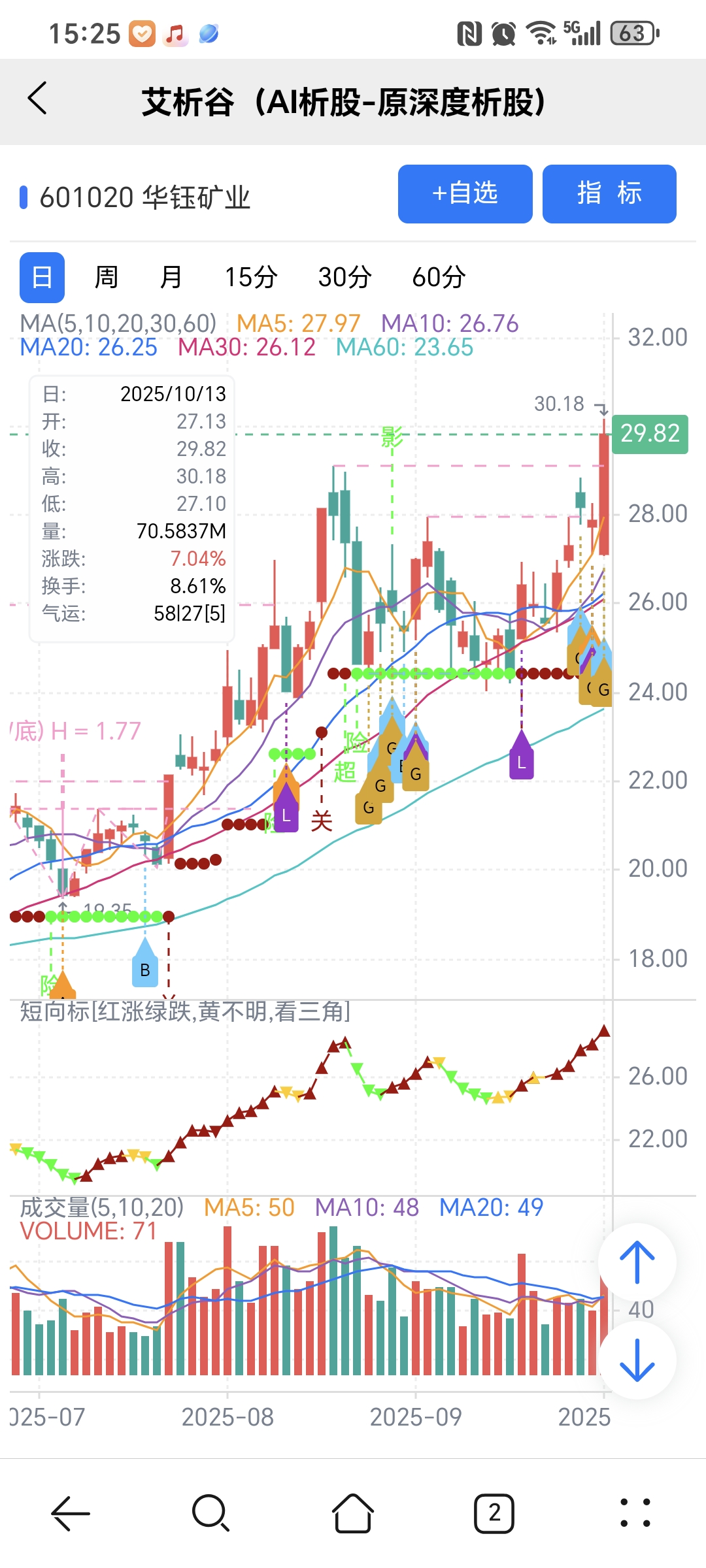 图中A、B、G、L 关注标记是对应AI选股模型当天下午2点多给出。