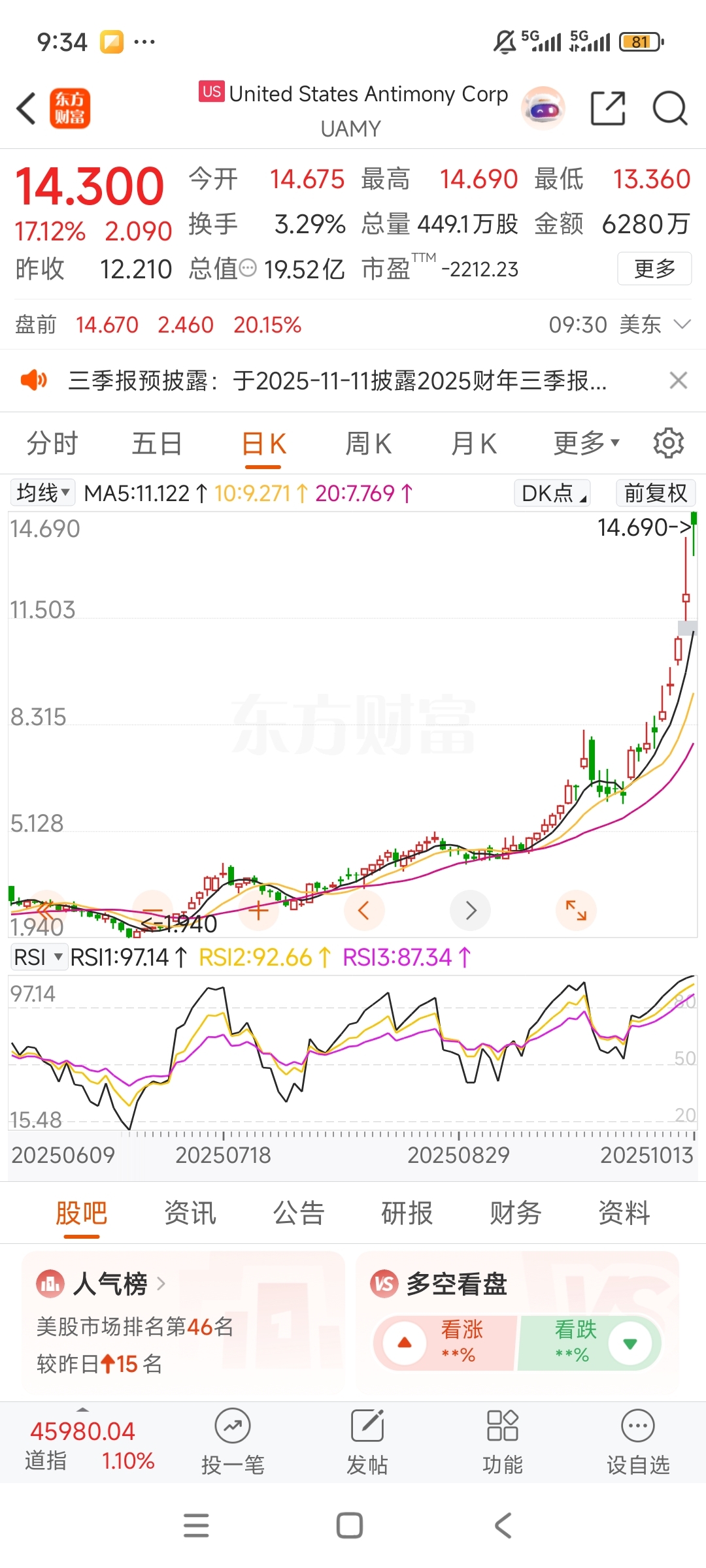 $华钰矿业(SH601020)$ 美国锑继续暴涨,国内的锑股必须跟上,全球最稀缺的战略资源,堪比黄金还珍贵