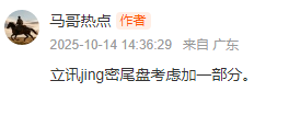 – Pro≈上代100%第三周平均交货期仅缩短2天,远低于去年同期iPhone 16的5天,显示供需依旧紧张;美国市场基础版与Pro Max仍无法店内现货提货iPhone 17系列整体销量已明确超越iPhone 16同期,标准版与Pro Max为主要增长引擎。这是昨晚复盘看到最新的销量情况,新17销量依然是只增不减,从这个数据分析来看,今年第四季度所有苹果17产业链业绩应该都不会差的,尤其是立讯精密拿到Pro Max整机唯一组装商(份额70%+),第四季度它的业绩能差吗,加上这一波股价又回落价值面了,接下来才是重头戏,昨天股价二次回踩十均线马哥果断加cang。