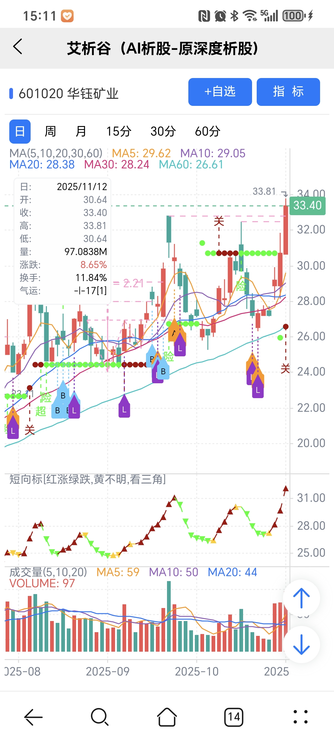 红绿小圆点是艾析谷的量化指标-超级短趋线,是趋势跟踪+突破类的量化指标,完全免费。