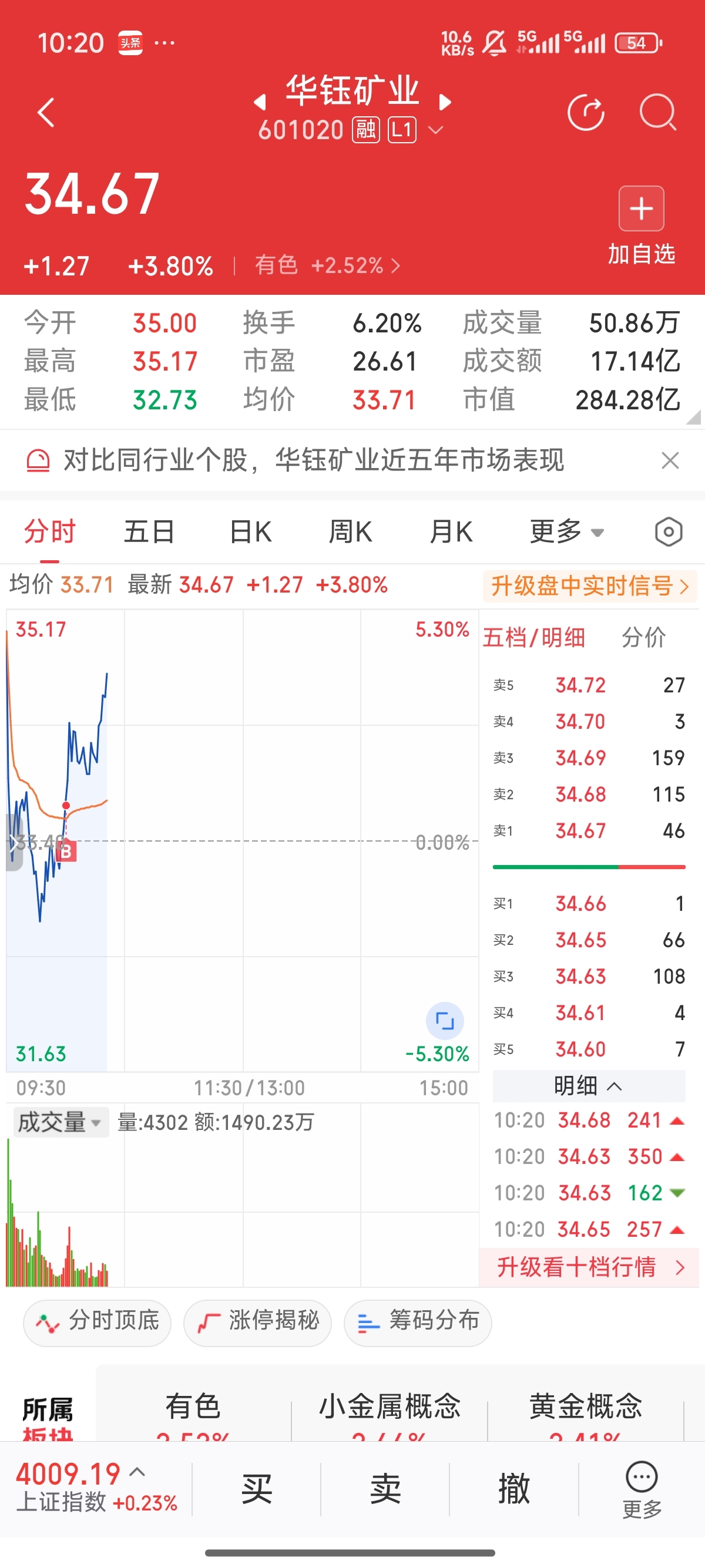 $华钰矿业(SH601020)$ 陈小群给我的信心,平盘直接买了,再加上有色板块大涨