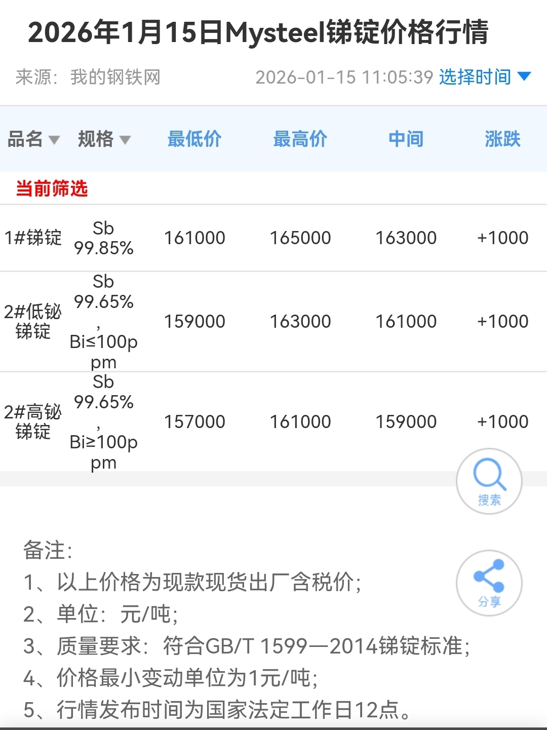 $华钰矿业(SH601020)$ $湖南黄金(SZ002155)$ 锑价稳步上升。