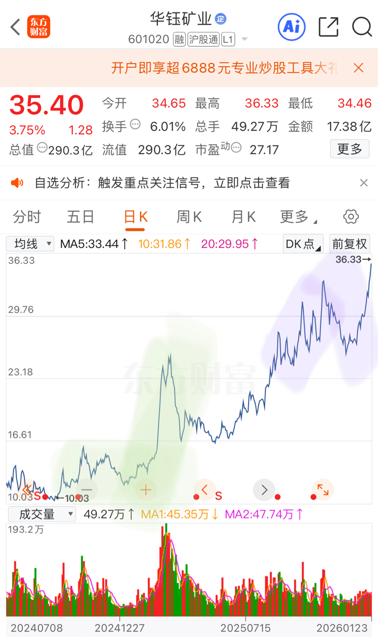 $华钰矿业(SH601020)$ 走势相似,会不会直接加速?黄金马上5000,华钰业绩也可以,但只有封板启动才能放量,点燃行情。