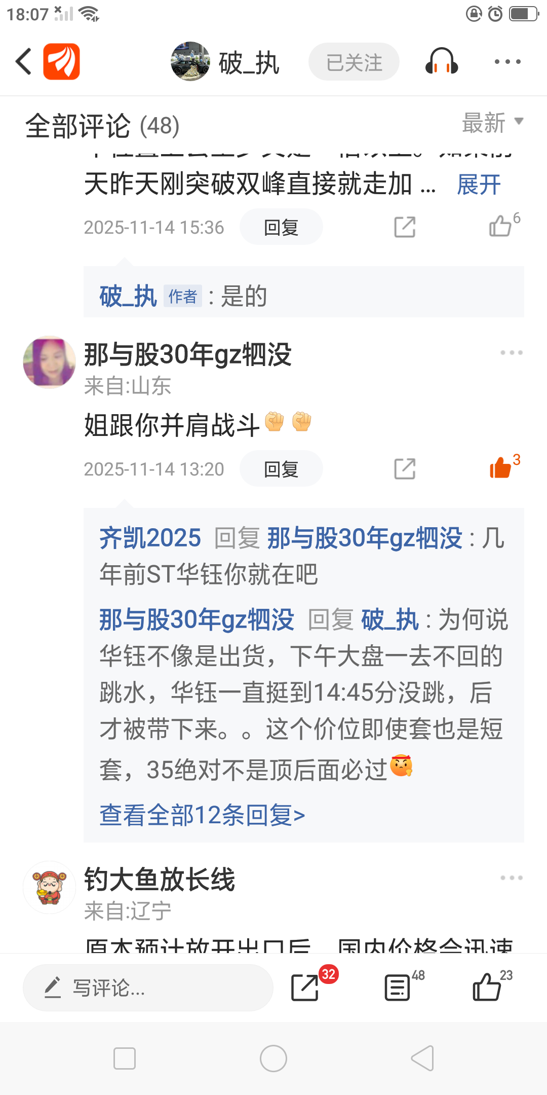 $华钰矿业(SH601020)$ 老弟@破_执 这段时间以来姐一直在感同身受着你的委屈,都看在眼里,看不下去为你鸣个不平还召来内g处的撒泼式的鸟语,呵呵都过去了,事实验证华钰的股价我们的智慧狠狠的打了那些喷子及ma人的g处的鸟脸