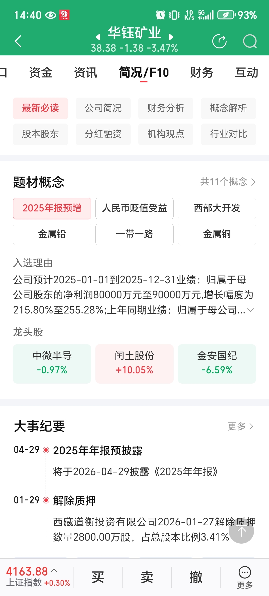 $华钰矿业(SH601020)$ 确实有点拉垮,年报预增200%多利润八到九个亿。今天走成这样