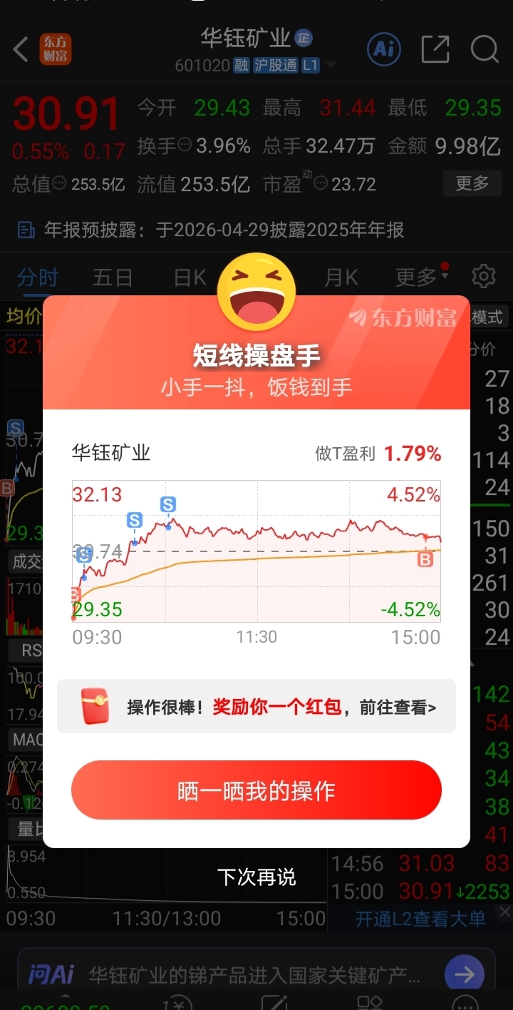 $华钰矿业(SH601020)$ 我就不相信他能让我回本,我先跑了做T。周一开盘必须低开,再洗一波,我我已经做好30.20、29.60、29.10加仓。