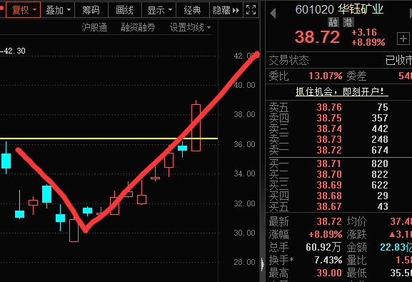 华钰矿业黄线(庄家成本线),自救回血,触线回血,卖出了结。