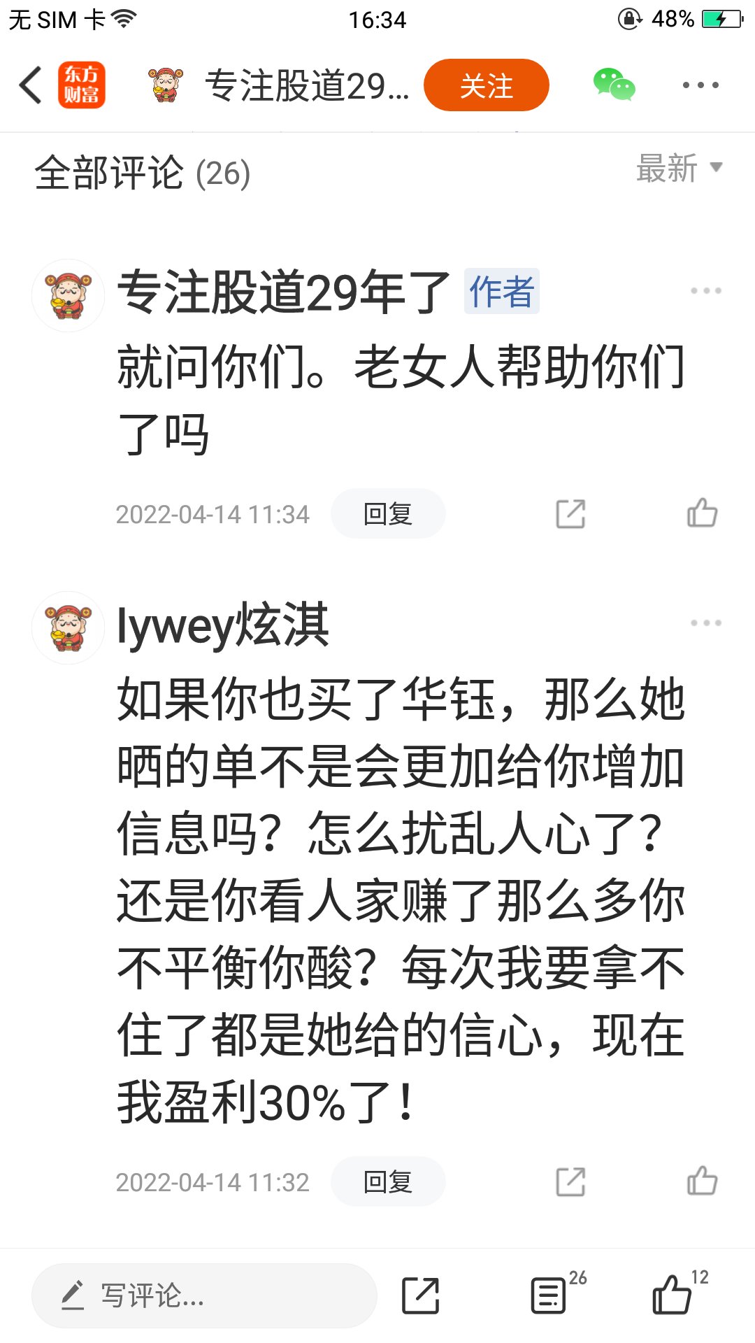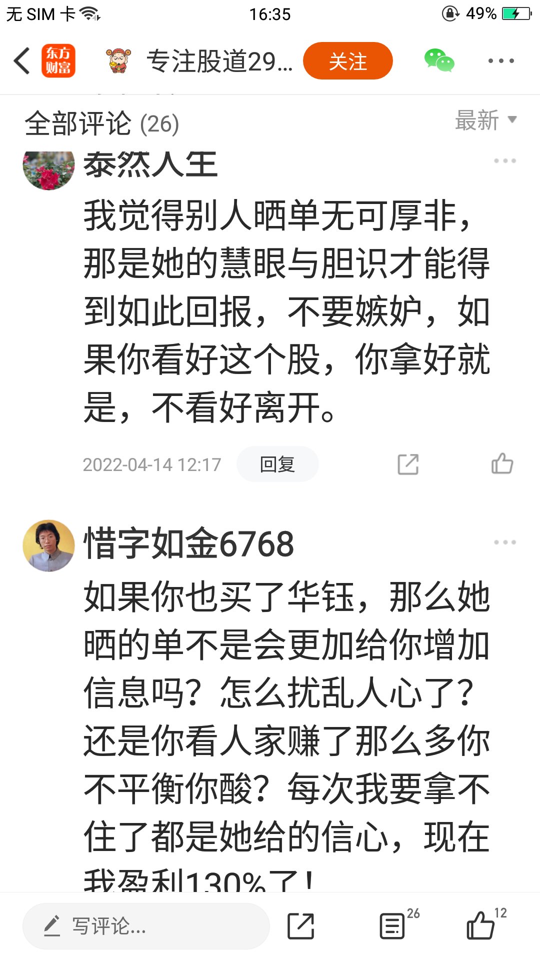 温馨提示: 1.根据《证券法》规定,禁止编造、传播虚假信息或者误导性信息,扰乱证券市场;2.用户在本社区发表的所有资料、言论等仅代表个人观点,与本网站立场无关,不对您构成任何投资建议。用户应基于自己的独立判断,自行决定证券投资并承担相应风险。《东方财富社区管理规定》