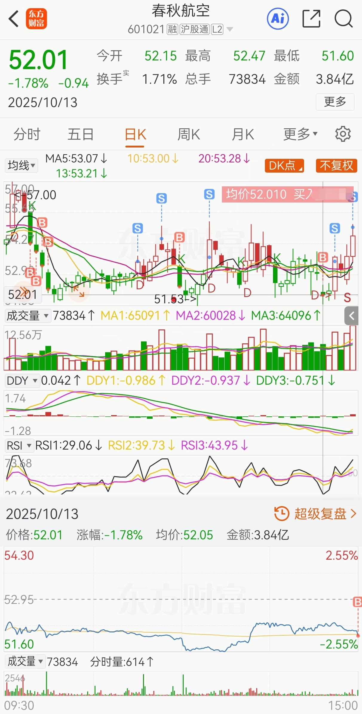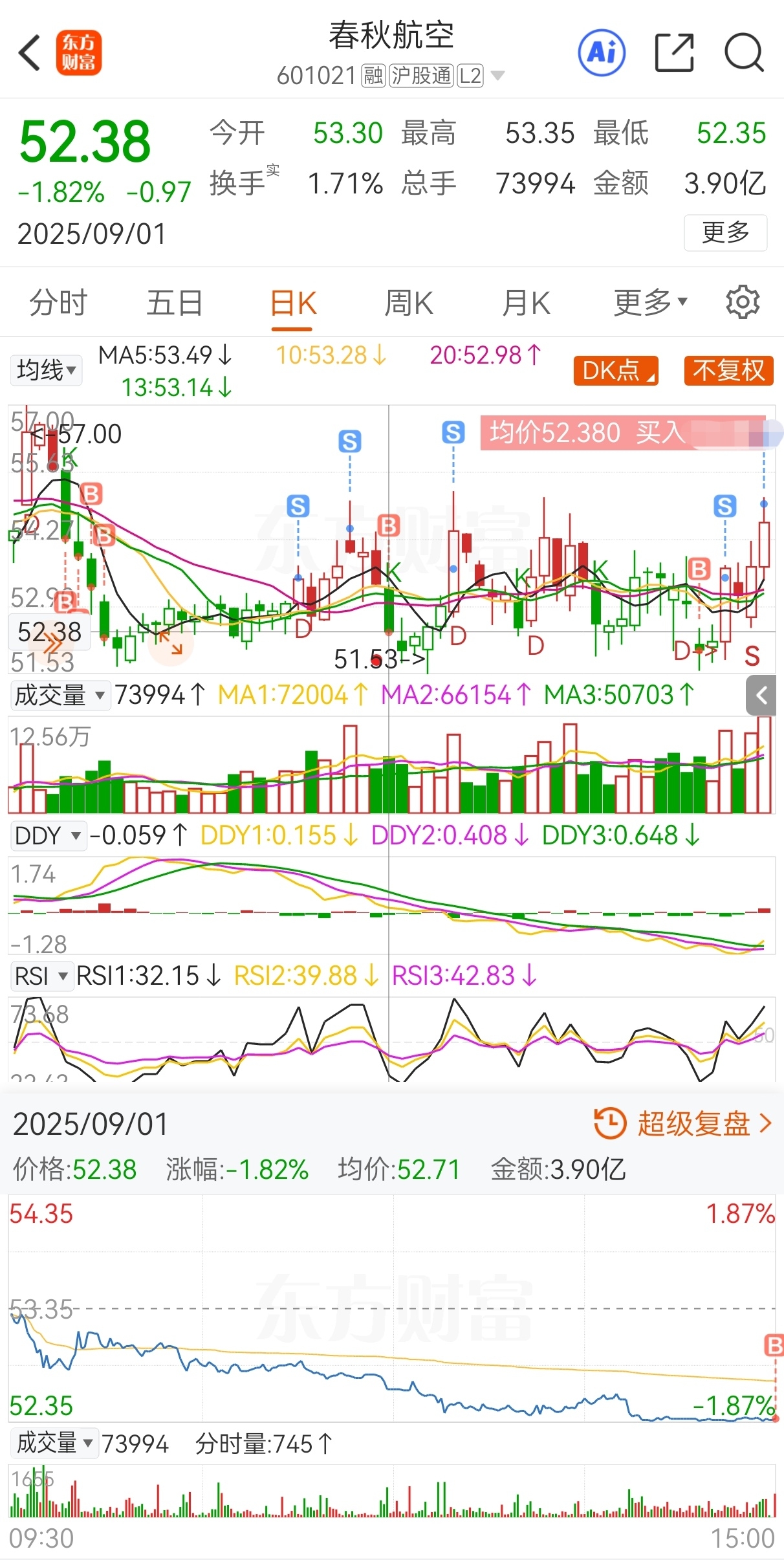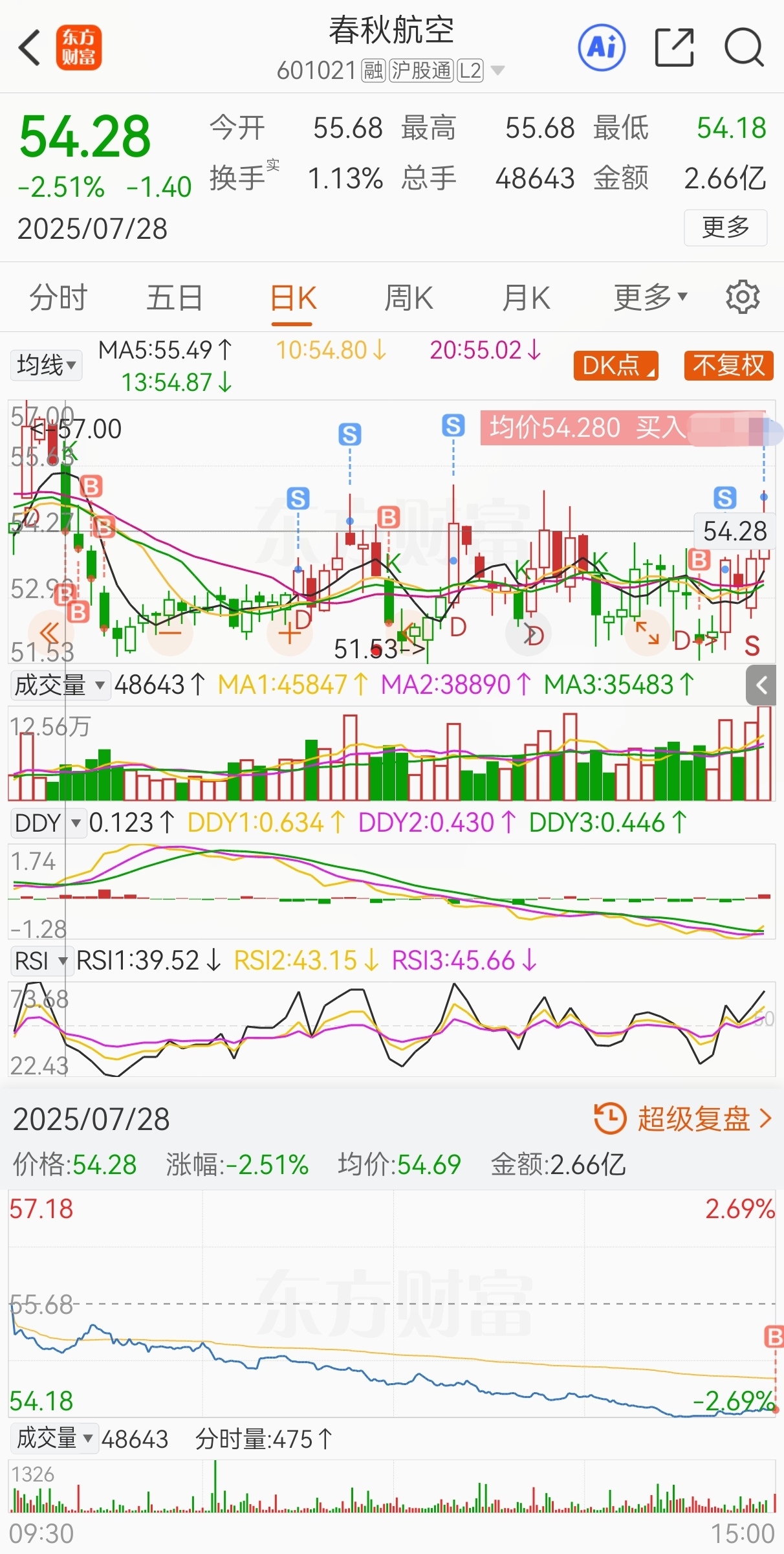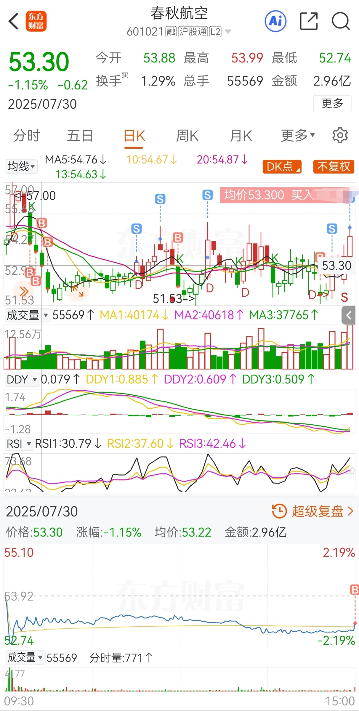 $春秋航空(SH601021)$ 原计划今买明卖,实际54.28买,53.92加仓,53.3再加仓,52.27继续加仓,53.49减仓,54.49再减仓,52.38又加仓,53.67继续减仓,52.01还加仓,53.49又减仓,54.99卖,实盘短线套利春秋航空,成功收米走人!