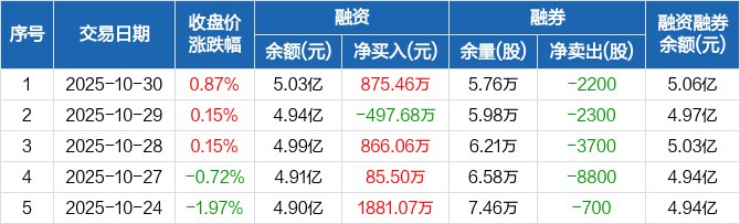 春秋航空:融资净买入875.46万元,融资余额5.03亿元(10-30)