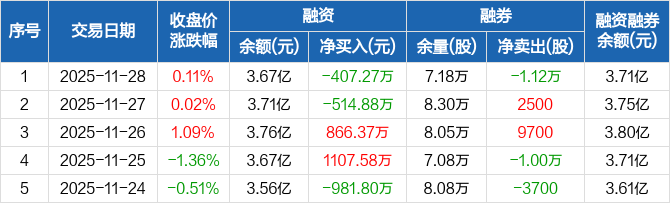 春秋航空:融资净偿还407.27万元,融资余额3.67亿元(11-28)