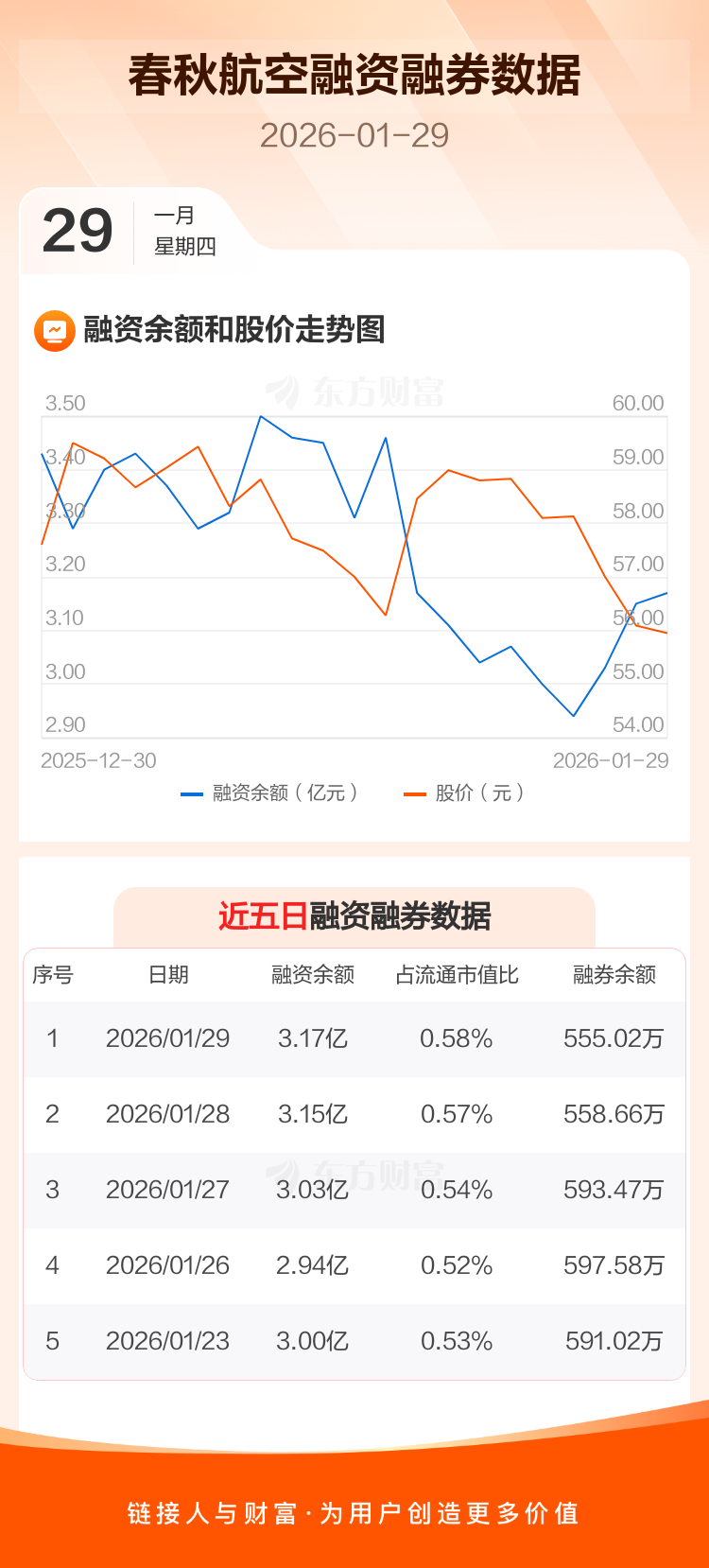 交易所最新数据显示,春秋航空于2026年1月29日获融资买入1213.86万元,融资偿还977.32万元,当日融资净买入236.54万元。目前,该股融资余额3.17亿,占流通市值比例为0.58%。
