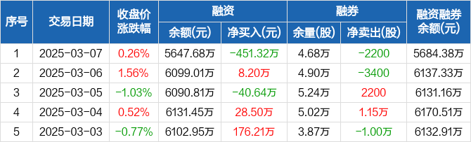 宁波远洋:融资净偿还451.32万元,融资余额5647.68万元(03-07)