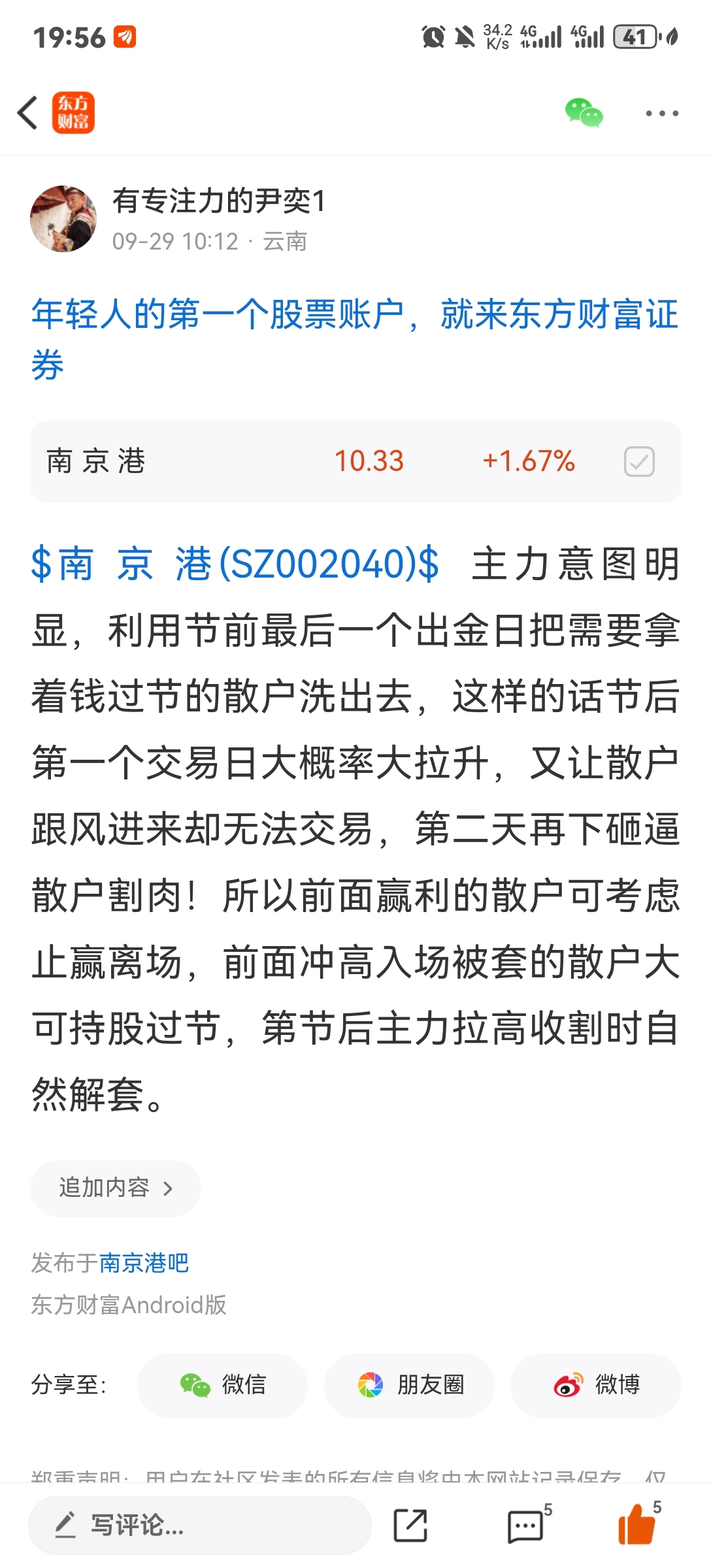 温馨提示: 1.根据《证券法》规定,禁止编造、传播虚假信息或者误导性信息,扰乱证券市场;2.用户在本社区发表的所有资料、言论等仅代表个人观点,与本网站立场无关,不对您构成任何投资建议。用户应基于自己的独立判断,自行决定证券投资并承担相应风险。《东方财富社区管理规定》