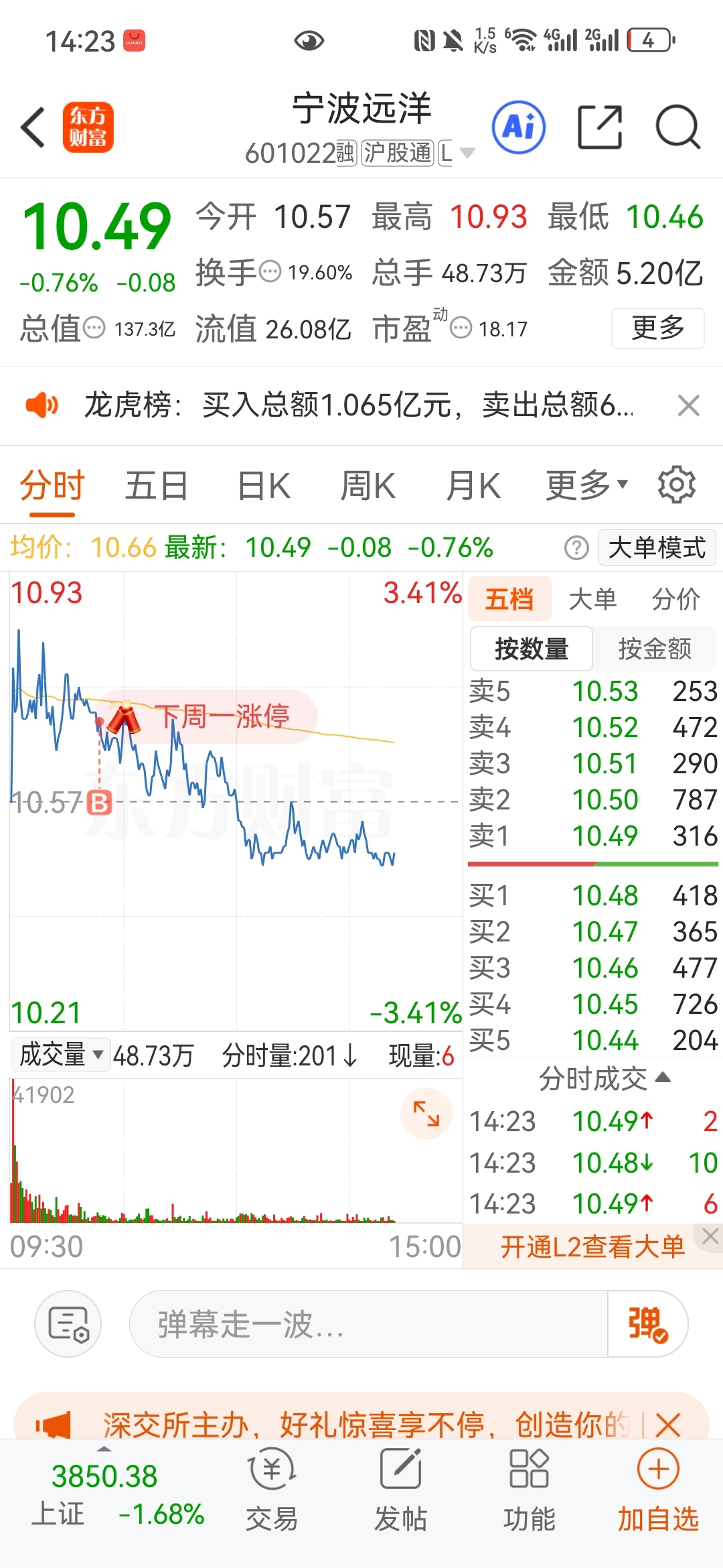 $宁波远洋(SH601022)$ 全天分时冲高回落创新低,控盘真牛逼。