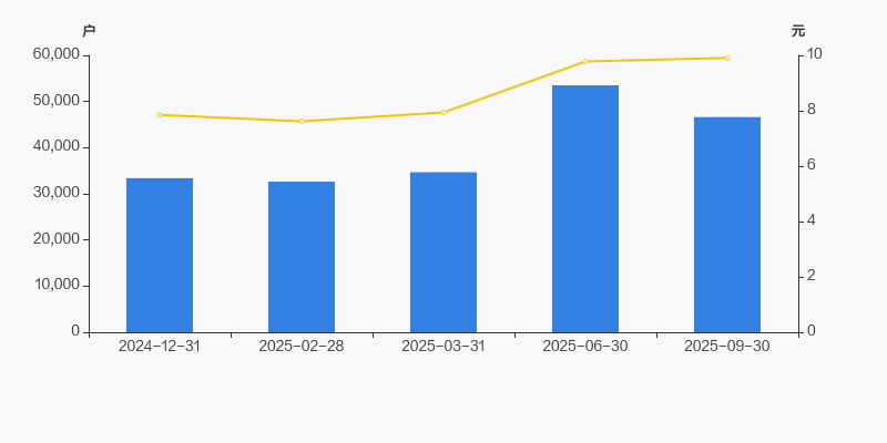 截至2025年9月30日,公司最新总股本为13.09亿股,其中流通股本为2.49亿股。户均持有流通股数量由上期的4646股上升至5333股,户均流通市值5.28万元。