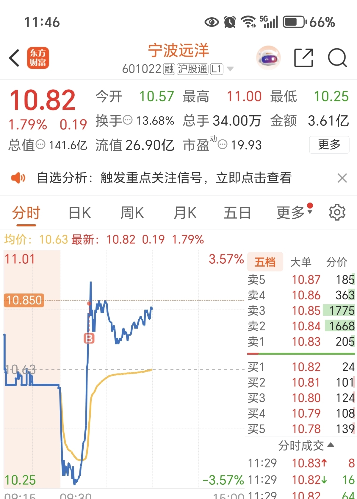 $宁波远洋(SH601022)$ 下午让我解套,大哥